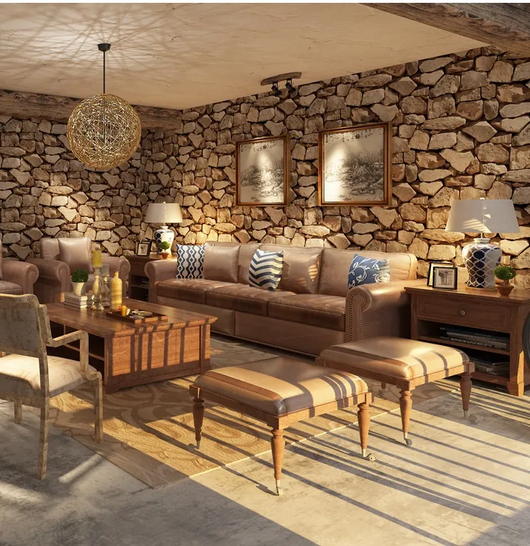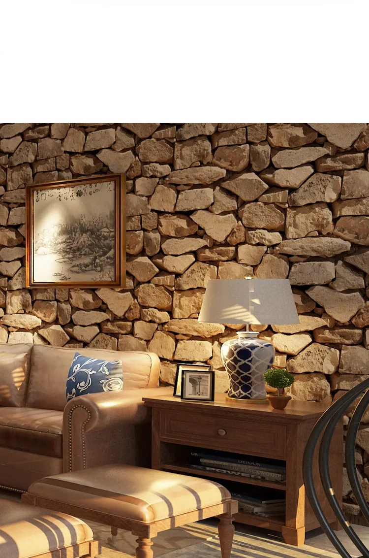 3、 Product performance: 3D simulation culture stone wallpaper. Non self adhesive wallpaper, back without glue, need to buy glue paste.