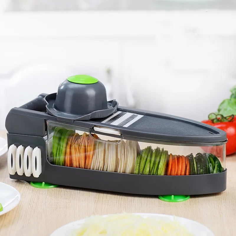 Portaaviones multifuncional de 6 cuchillas The Kitchen El rallador es una herramienta innovadora diseñada para simplificar el proceso de preparación de alimentos. Con sus seis cuchillas intercambiables, este rallador le permite triturar, rebanar y rallar una variedad de ingredientes sin esfuerzo, lo que lo convierte en un complemento esencial para cualquier cocina.