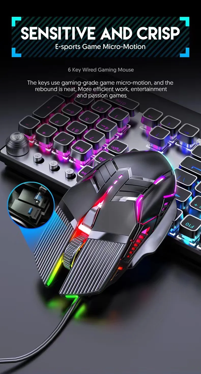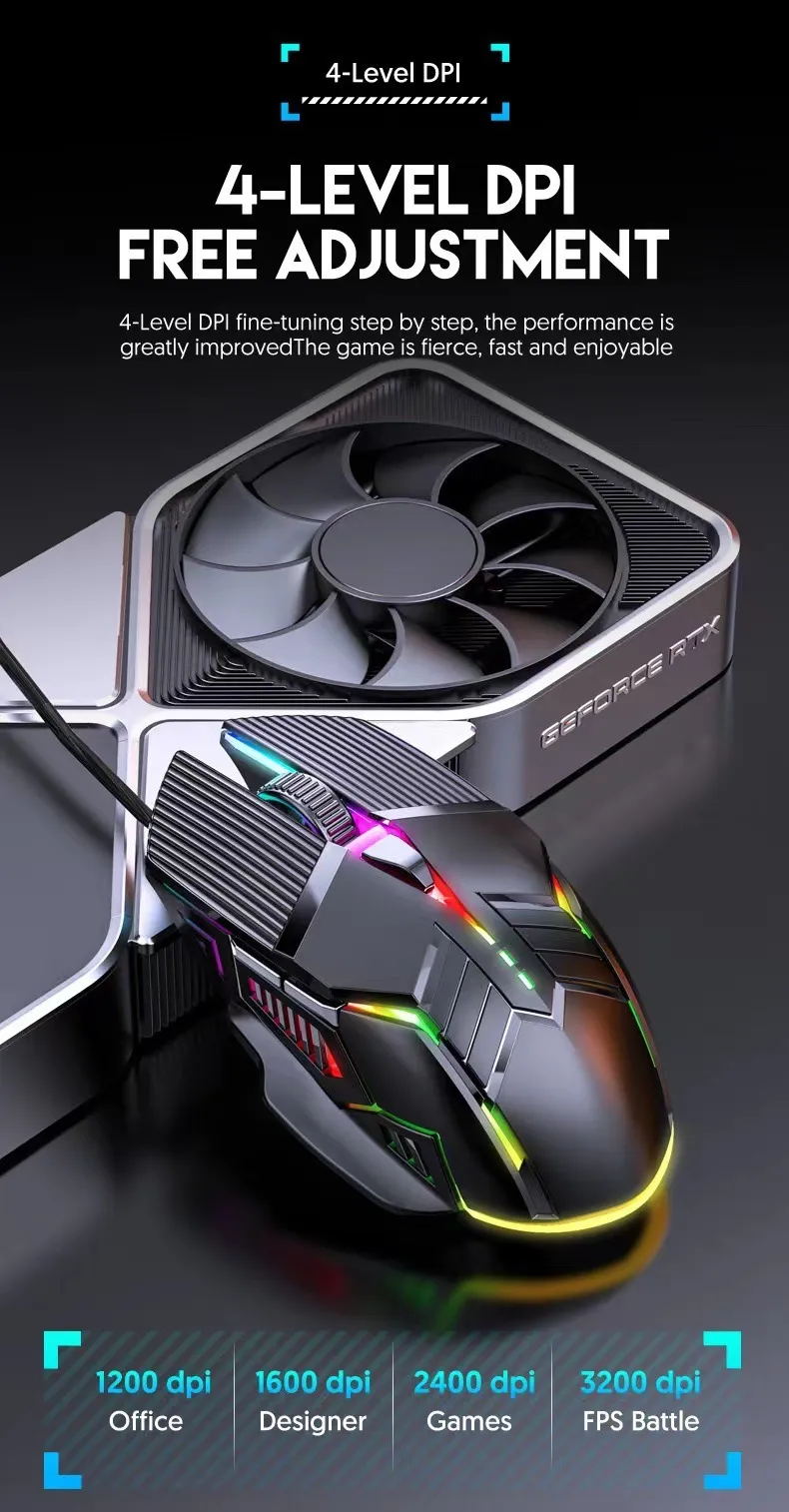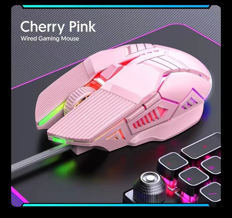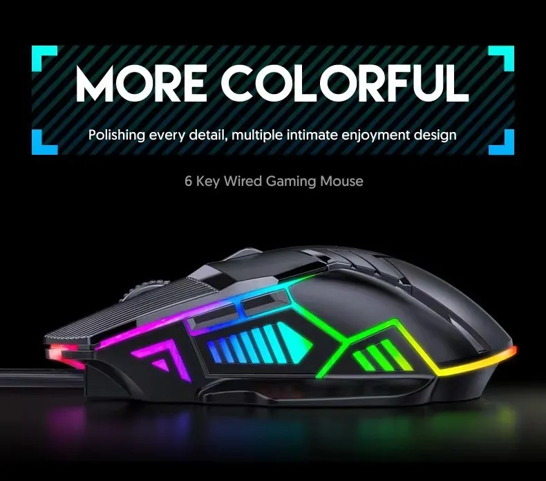 Ratón con cable 6D, colorido, deslumbrante, para juegos de deportes electrónicos, oficina, silencioso y luminoso.
