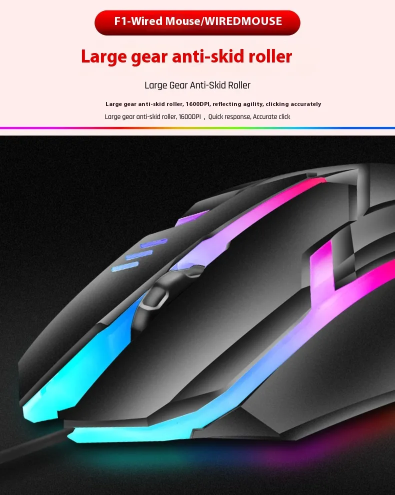 El ratón luminoso con cable está diseñado para ofrecer versatilidad y rendimiento, lo que lo hace perfecto tanto para el trabajo como para el ocio. Con conexión USB plug-and-play, este ratón es universalmente compatible con ordenadores de sobremesa y portátiles, ofreciendo un rendimiento fluido y fiable en todos los dispositivos. El ratón presenta un diseño vibrante y luminoso que añade un toque de estilo a cualquier configuración y mejora la visibilidad en entornos con poca luz. Ideal para los entusiastas de los videojuegos, aporta mayor estilo y precisión a juegos competitivos como PlayerUnknown's Battlegrounds (PUBG), lo que lo convierte en una excelente opción para quienes necesitan un control preciso. Con una forma ergonómica, el ratón luminoso con cable ofrece un agarre cómodo para un uso prolongado tanto en la oficina como en casa. Los botones resistentes están diseñados para una larga duración y garantizan una experiencia de clic suave, ideal para todo, desde las tareas diarias de oficina hasta las sesiones de juego intensas. Su sensor óptico de alta resolución ofrece un seguimiento preciso, lo que permite a los usuarios navegar eficientemente en una variedad de superficies. Ya sea que trabajes con hojas de cálculo o disfrutes de juegos de acción trepidantes, este ratón se adapta a tus necesidades con facilidad y fiabilidad. El efecto luminoso del ratón le da un aspecto único, inspirado en los videojuegos, que realza la estética de tu equipo. Diseñado con una construcción robusta, el ratón está diseñado para soportar el uso diario, ya sea para juegos, tareas de oficina o navegación en general. Disfruta de un rendimiento fluido, un manejo cómodo y la emoción de un diseño brillante. El ratón luminoso con cable combina funcionalidad y estilo, lo que lo convierte en la mejor opción para jugadores, profesionales y usuarios ocasionales. Material: Plástico, metal. Atributos del producto: Tamaño del paquete: 97 x 154 x 63 (1 mm). Información del producto: Color: Ratón F1 blanco, ratón F1 negro. Modelo aplicable: Portátil. Interfaz: USB. Contenido del paquete: Caja de color. Modo de funcionamiento: Fotoeléctrico. Longitud del cable: 1,4 mm. Tamaño del producto: 124 x 67 x 33 mm. Imagen del producto: Imagen estándar.