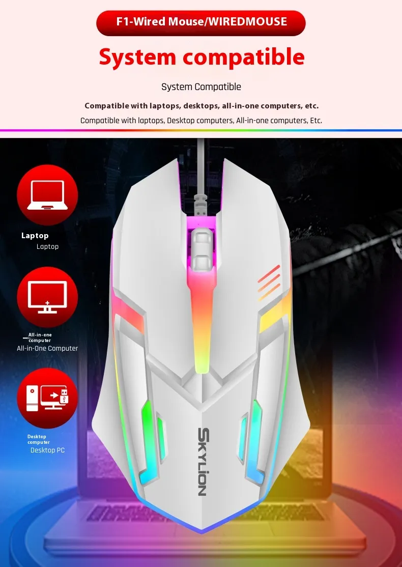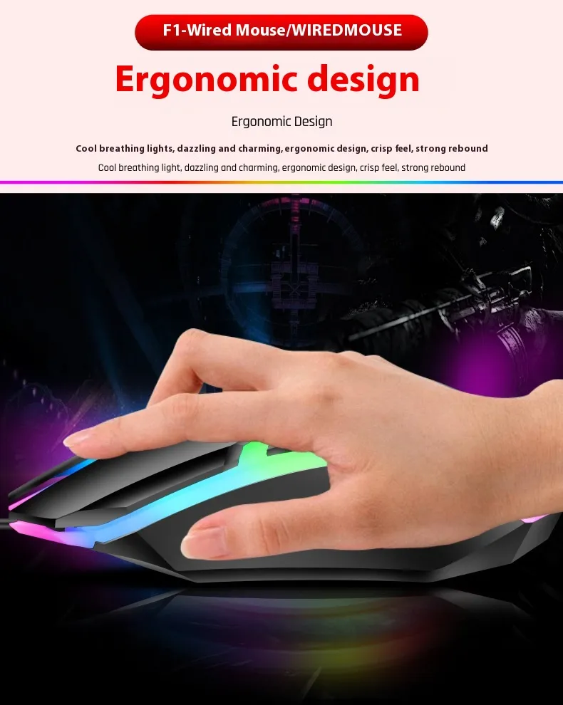 El ratón luminoso con cable está diseñado para ofrecer versatilidad y rendimiento, lo que lo hace perfecto tanto para el trabajo como para el ocio. Con conexión USB plug-and-play, este ratón es universalmente compatible con ordenadores de sobremesa y portátiles, ofreciendo un rendimiento fluido y fiable en todos los dispositivos. El ratón presenta un diseño vibrante y luminoso que añade un toque de estilo a cualquier configuración y mejora la visibilidad en entornos con poca luz. Ideal para los entusiastas de los videojuegos, aporta mayor estilo y precisión a juegos competitivos como PlayerUnknown's Battlegrounds (PUBG), lo que lo convierte en una excelente opción para quienes necesitan un control preciso. Con una forma ergonómica, el ratón luminoso con cable ofrece un agarre cómodo para un uso prolongado tanto en la oficina como en casa. Los botones resistentes están diseñados para una larga duración y garantizan una experiencia de clic suave, ideal para todo, desde las tareas diarias de oficina hasta las sesiones de juego intensas. Su sensor óptico de alta resolución ofrece un seguimiento preciso, lo que permite a los usuarios navegar eficientemente en una variedad de superficies. Ya sea que trabajes con hojas de cálculo o disfrutes de juegos de acción trepidantes, este ratón se adapta a tus necesidades con facilidad y fiabilidad. El efecto luminoso del ratón le da un aspecto único, inspirado en los videojuegos, que realza la estética de tu equipo. Diseñado con una construcción robusta, el ratón está diseñado para soportar el uso diario, ya sea para juegos, tareas de oficina o navegación en general. Disfruta de un rendimiento fluido, un manejo cómodo y la emoción de un diseño brillante. El ratón luminoso con cable combina funcionalidad y estilo, lo que lo convierte en la mejor opción para jugadores, profesionales y usuarios ocasionales. Material: Plástico, metal. Atributos del producto: Tamaño del paquete: 97 x 154 x 63 (1 mm). Información del producto: Color: Ratón F1 blanco, ratón F1 negro. Modelo aplicable: Portátil. Interfaz: USB. Contenido del paquete: Caja de color. Modo de funcionamiento: Fotoeléctrico. Longitud del cable: 1,4 mm. Tamaño del producto: 124 x 67 x 33 mm. Imagen del producto: Imagen estándar.