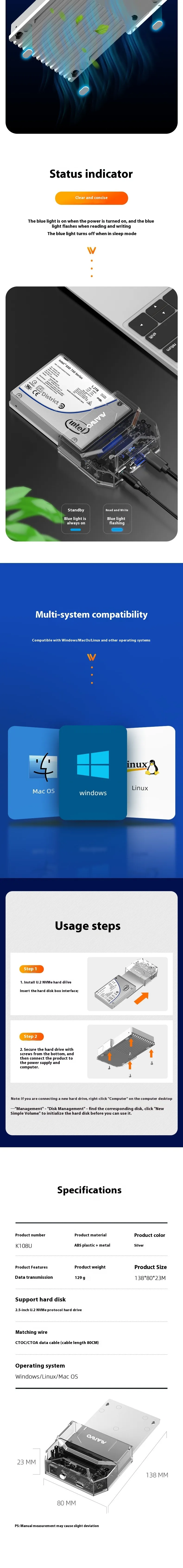 External Hard Disk Read/Write Dock – Plug-In “Seat” for Easy Storage Access and Backup
