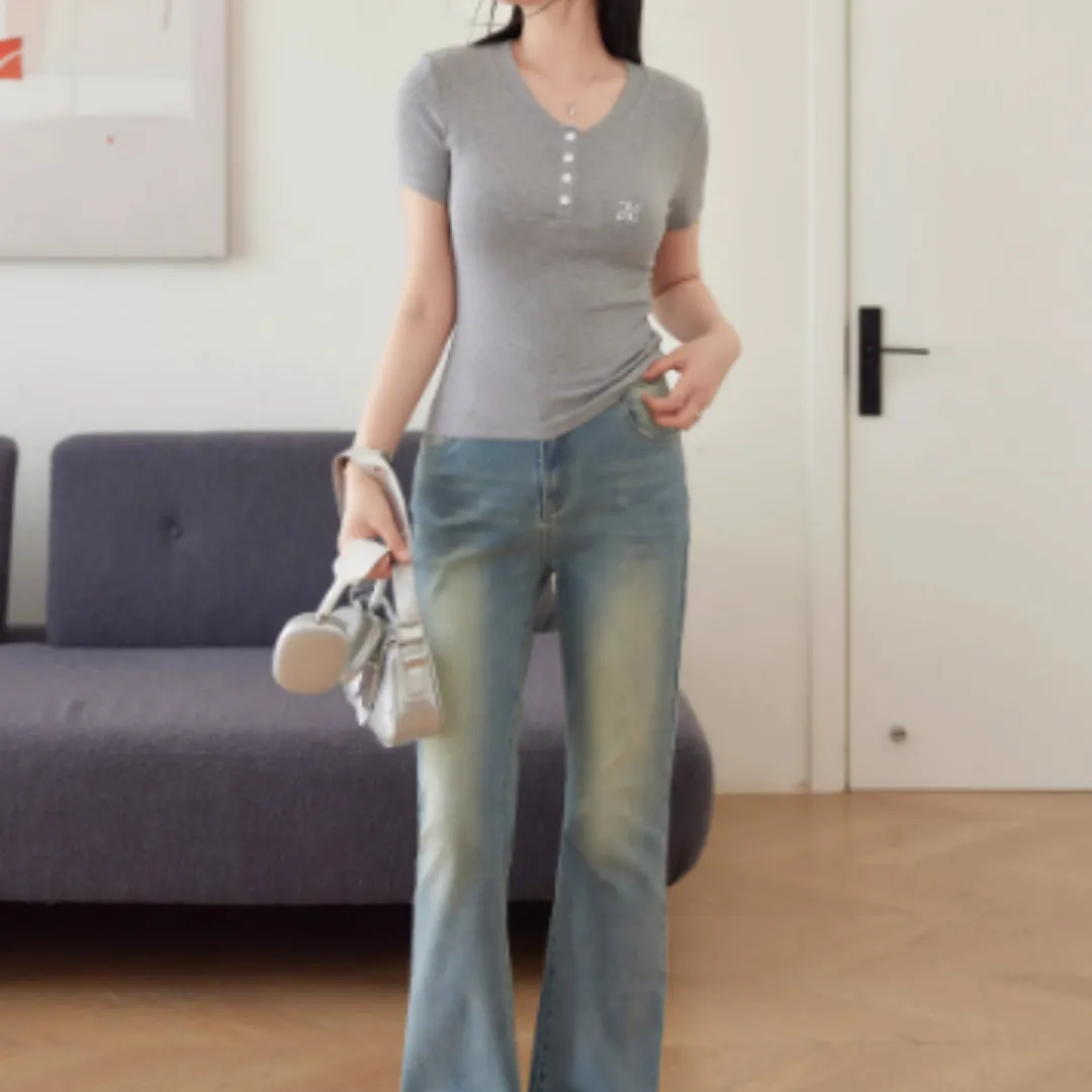 Crafted from a high-elasticity fabric blend, this short-sleeved T-shirt stretches comfortably with your movements while maintaining its shape throughout the day. The slimming cut gently contours the waist and torso, providing a sleek, streamlined look without feeling restrictive.
