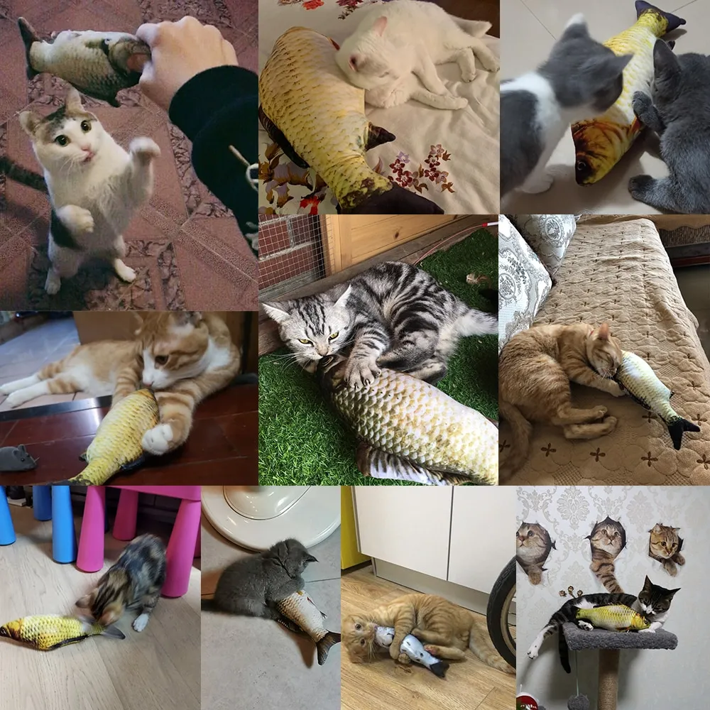 Each toy typically features life‑like patterns, vibrant colours, and textured surfaces that resemble real fish fins and scales, enhancing visual curiosity and encouraging cats to engage. Some models include crinkle interiors, hidden squeakers, or catnip pouches — adding sound and scent stimulation that boosts excitement and prolongs play.