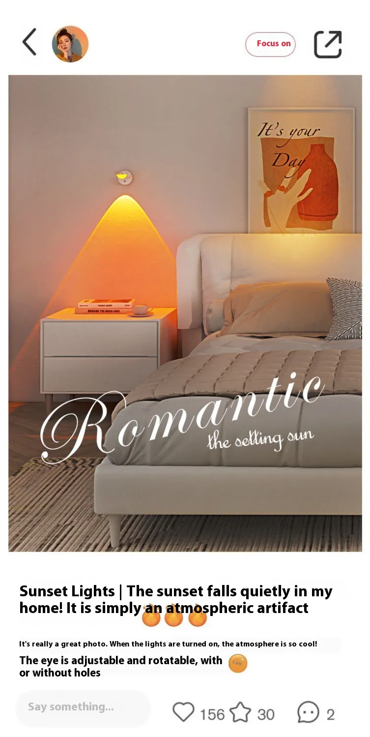 The Rechargeable Sunset Red Wall Lamp is an ideal way to bring warmth, beauty, and relaxation to your space. With its easy-to-use design, rechargeable function, and stunning sunset glow, this lamp is the perfect addition to any room in your home. Whether you're creating a relaxing atmosphere in the bedroom, enhancing your living space, or giving a thoughtful gift, this installation-free lamp will light up your life with warmth and style.