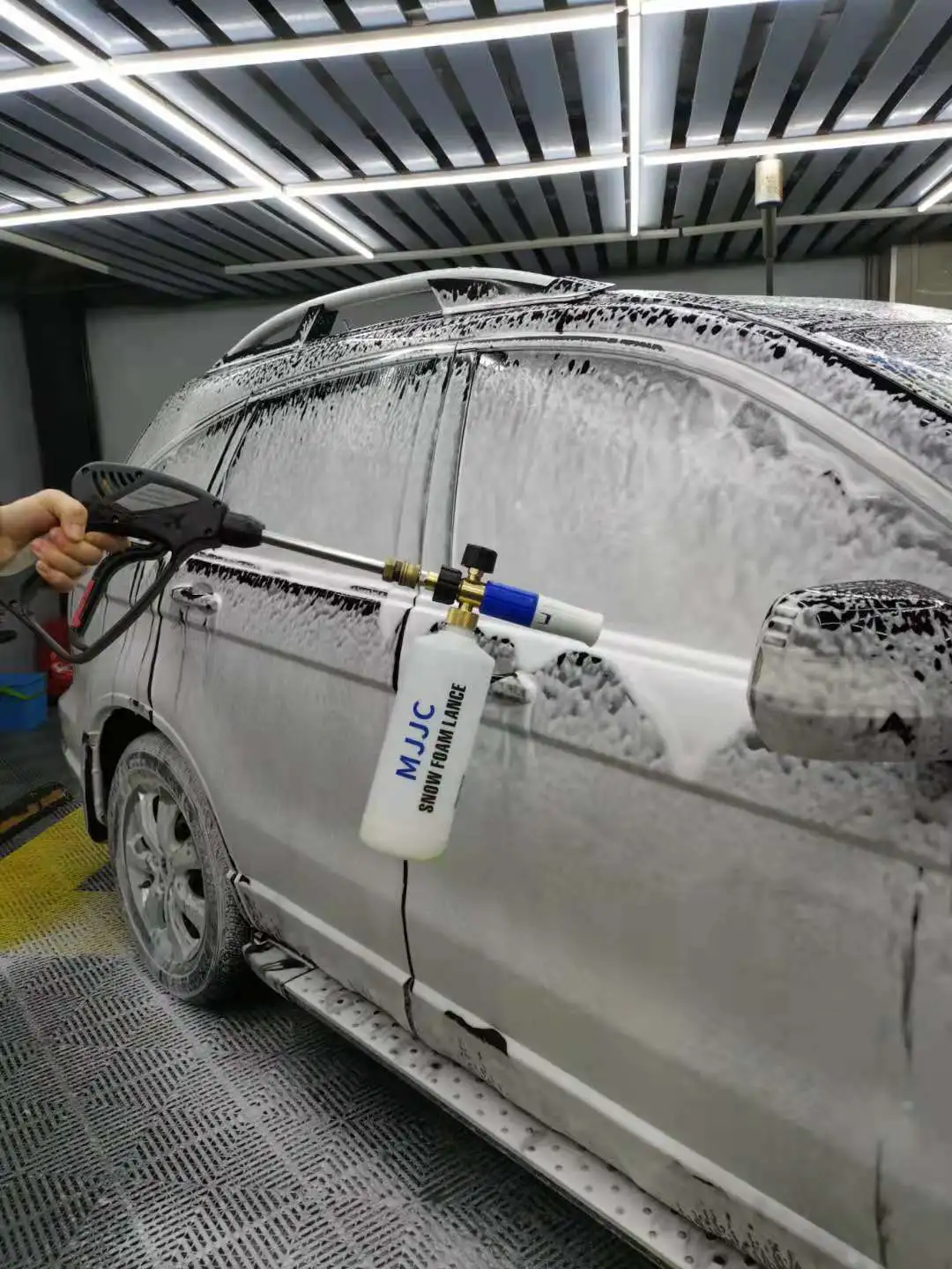 El depósito de espuma de alta presión MJJC está diseñado para producir una espuma espesa y de alta densidad que cubre toda la superficie de su vehículo. Esto no solo ayuda a eliminar la suciedad y la mugre eficazmente, sino que también protege la pintura al minimizar el contacto directo durante el proceso de lavado.