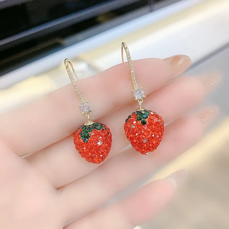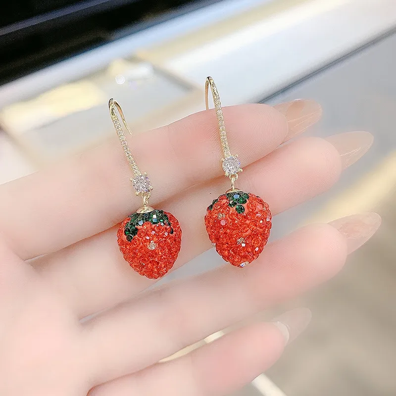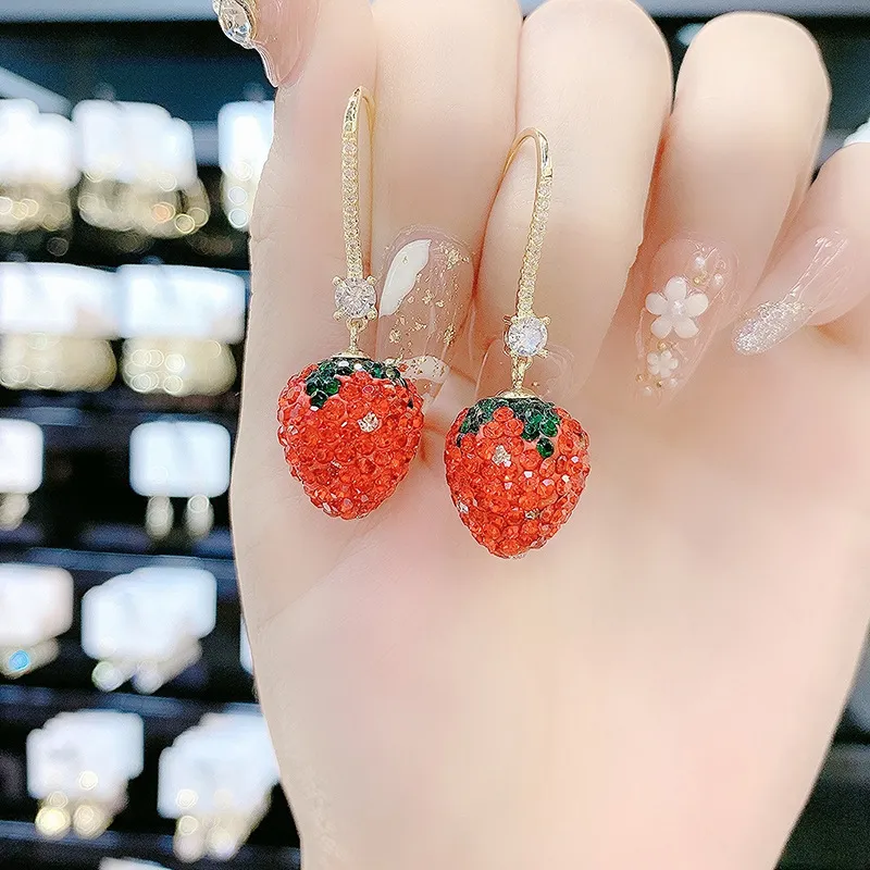 Red Strawberry Long Section Thin Fashion Personality Senior Silver Needle