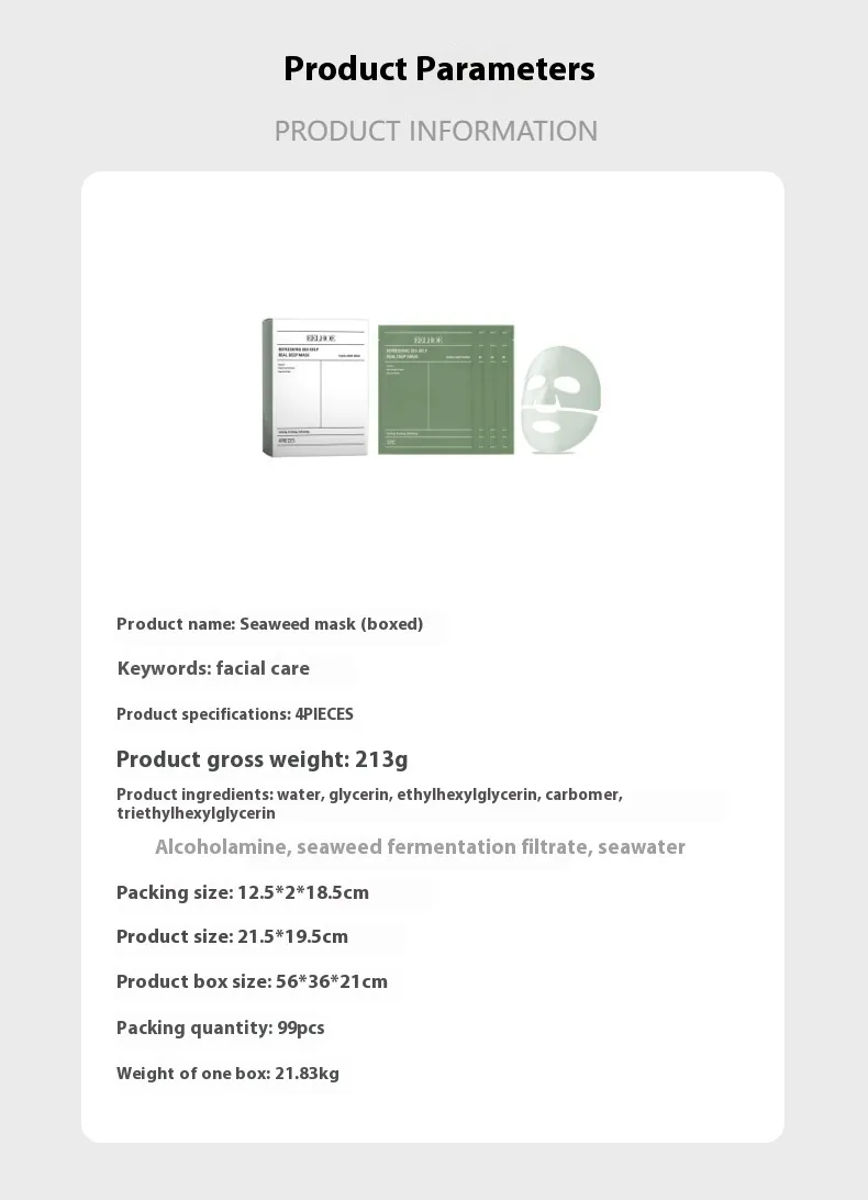 Sea Kelp Mask, facial sheet mask, hydrating mask, purifying face mask, soothing mask, EELHOE mask, deep hydration mask, sensitive skin mask, sea kelp skincare, refreshing face mask, rejuvenating skin mask, at-home skincare, calming face mask.