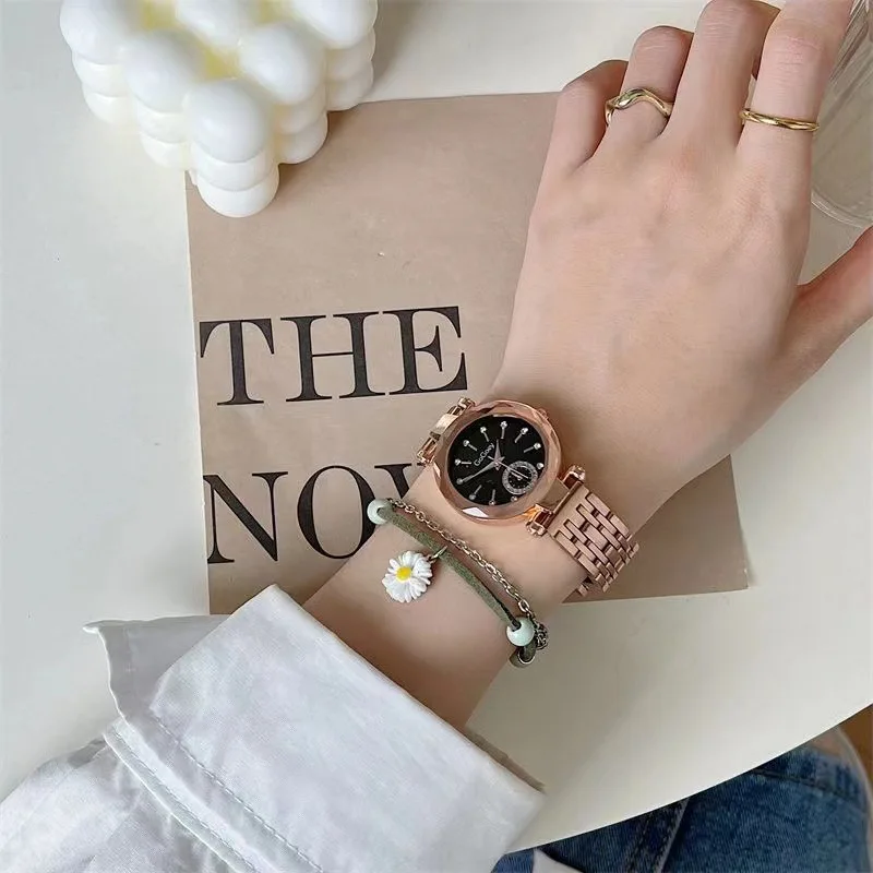 En el corazón de este impresionante reloj se encuentra un movimiento de cuarzo de alta calidad. Reconocido por su precisión, los relojes de cuarzo requieren un mantenimiento mínimo y ofrecen un rendimiento superior. El reloj de cuarzo de acero de moda para mujer de la nueva marca 2024 garantiza que siempre tendrá una cronometración precisa, ya sea en el trabajo, en el ocio o en movimiento.