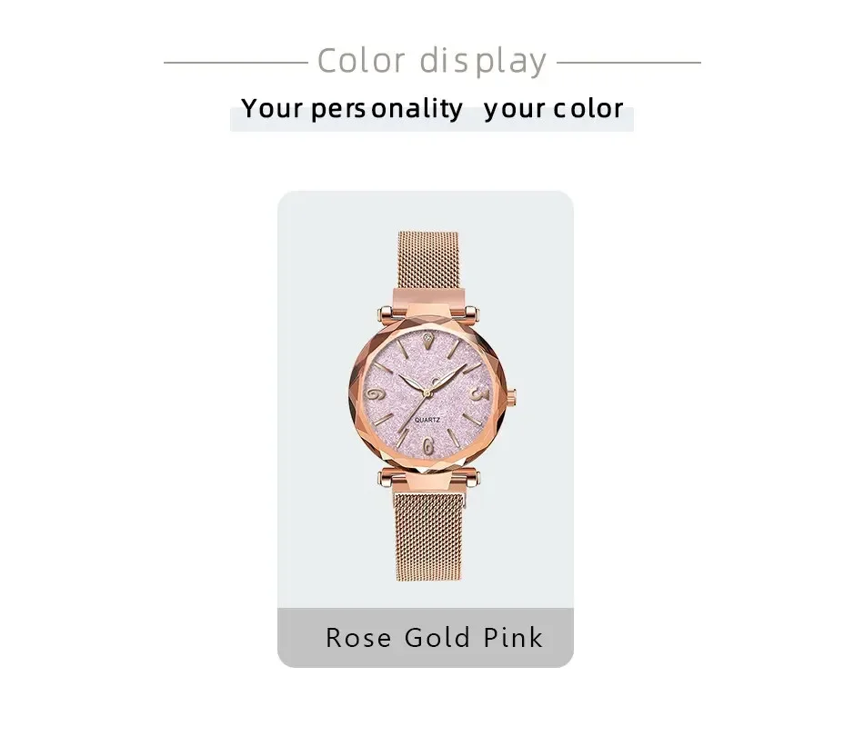 Los nuevos relojes de moda para mujer son el epítome del diseño moderno y la practicidad. Con su sencilla correa de malla en oro rosa y su cierre magnético, este lujoso reloj de pulsera de cuarzo para mujer combina elegancia y funcionalidad, ideal tanto para ocasiones informales como de negocios. Diseñado para la mujer moderna que valora el estilo, la comodidad y la fiabilidad, este reloj se convertirá rápidamente en su accesorio predilecto, ya sea para una reunión de negocios, una salida informal o un evento nocturno. Con una correa de malla en oro rosa y un preciso movimiento de cuarzo, este reloj ofrece la combinación perfecta de belleza y rendimiento. No es solo un reloj, es un accesorio que añade un toque sofisticado a tu look diario. Ya sea que busques un regalo de lujo o algo para completar tu armario, este reloj ofrece estilo y funcionalidad, lo que lo convierte en una adición imprescindible a tu colección.