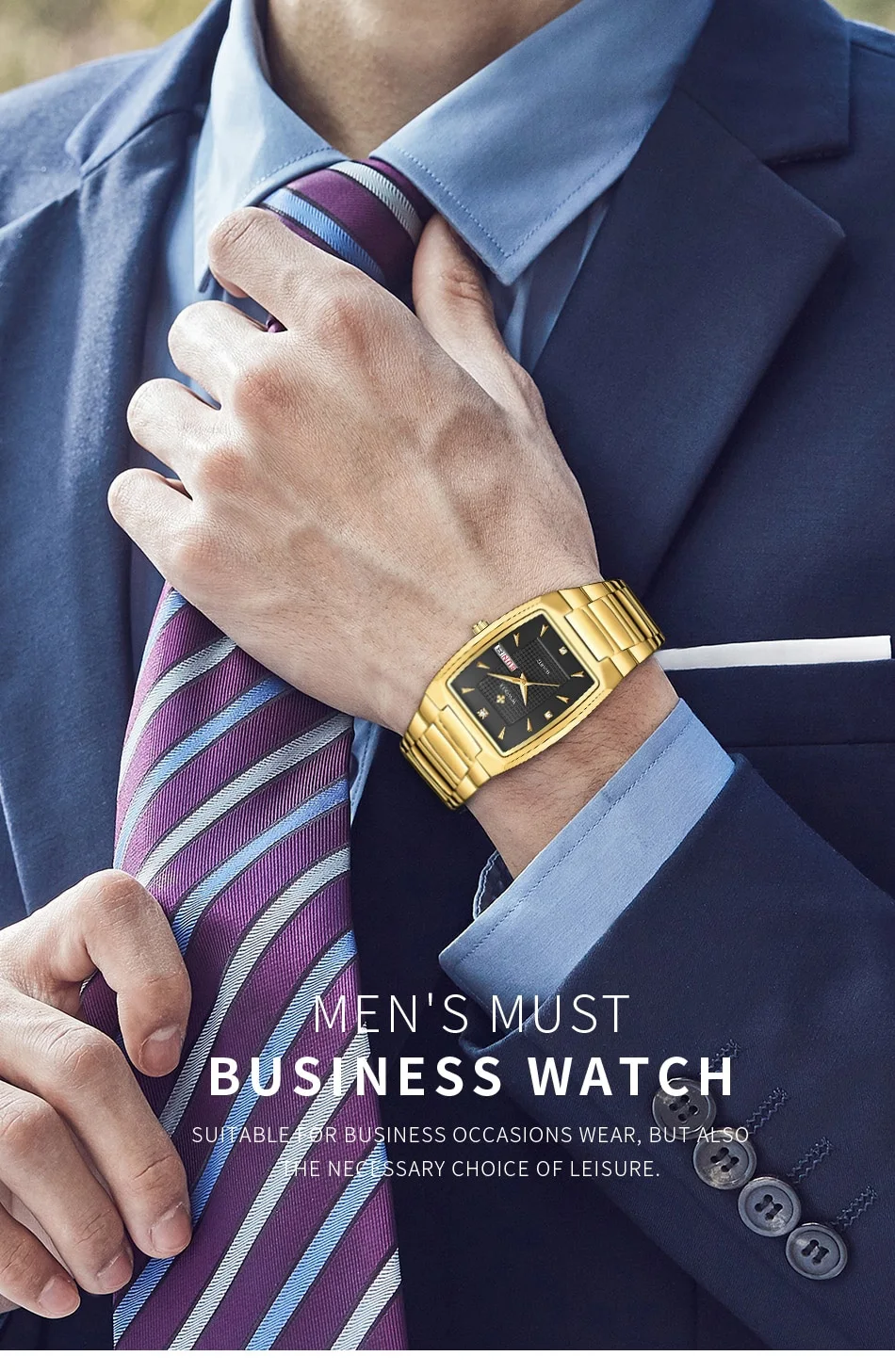 - Vestimenta de negocios y trabajo: El elegante acabado dorado y el diseño cuadrado hacen que este reloj sea adecuado para ropa de negocios y de oficina, añadiendo un toque sofisticado a la vestimenta de trabajo.