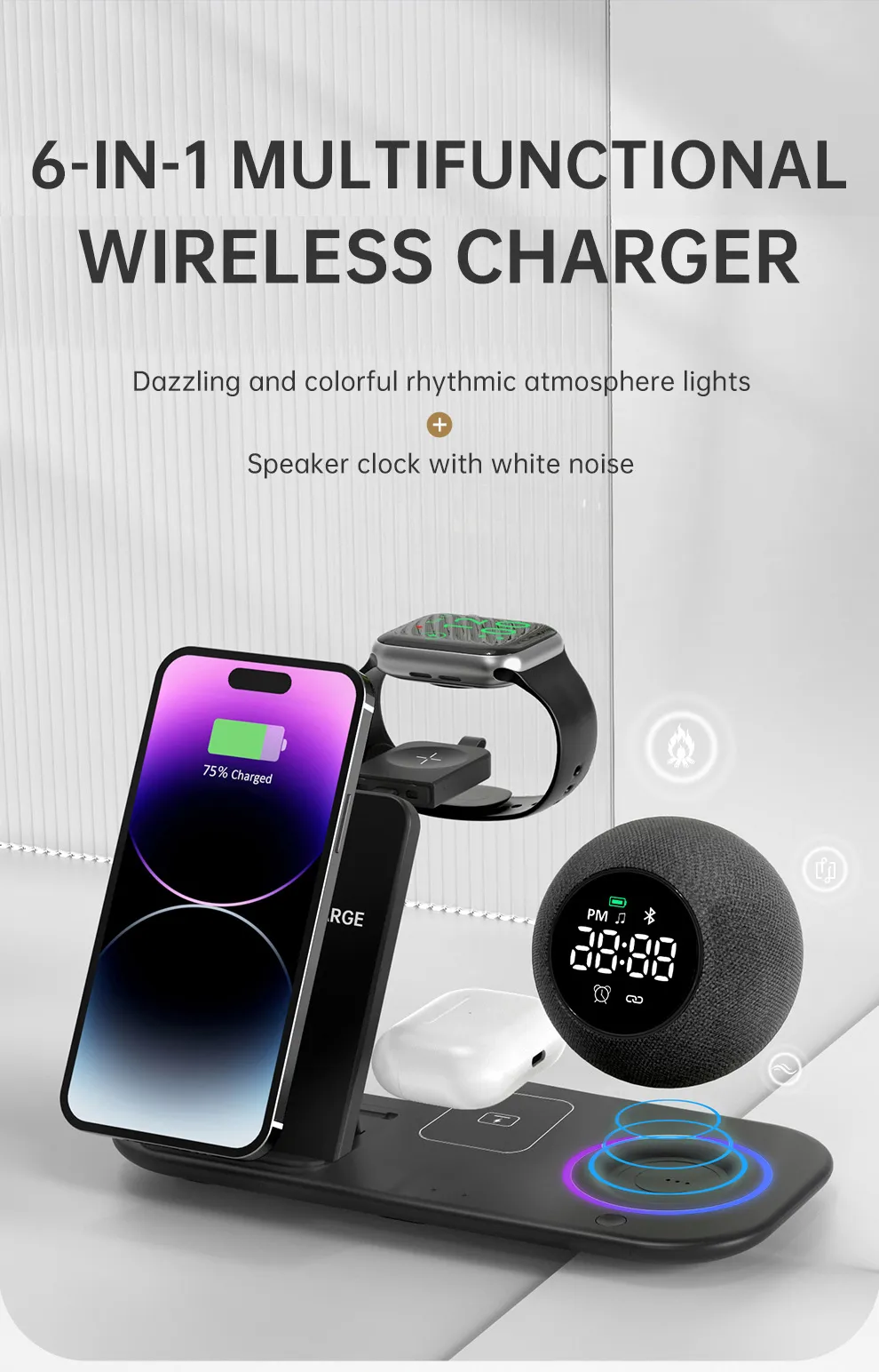 El altavoz Bluetooth despertador con luz ambiental y ruido blanco multifuncional es la solución ideal para quienes buscan mejorar su rutina diaria con un toque de relajación y tecnología moderna. Combinando cuatro funciones esenciales: máquina de sonido de ruido blanco, luz ambiental, despertador y altavoz Bluetooth, este versátil dispositivo está diseñado para ayudarte a dormir mejor, despertarte con más tranquilidad y disfrutar de tu música o podcasts favoritos, todo desde una unidad compacta.