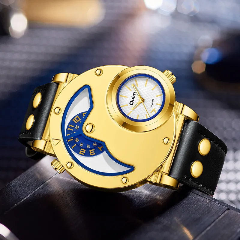 Reloj dorado multifuncional con esfera exagerada para hombre
