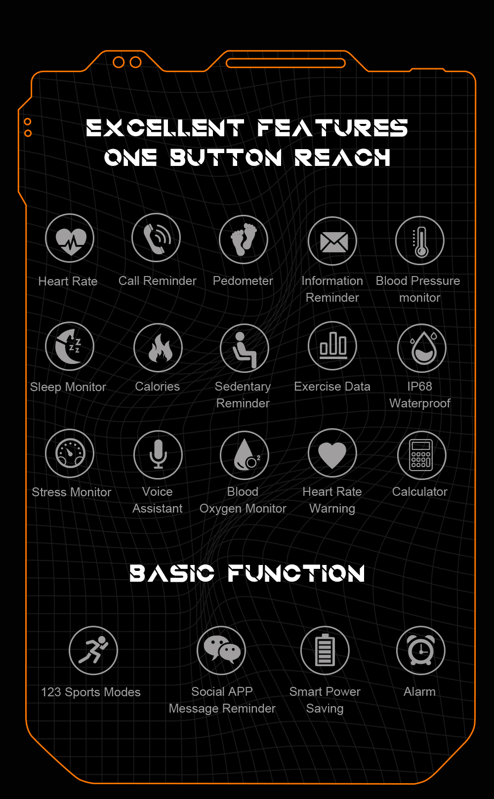 Mantén tu salud bajo control con el Smartwatch. Con el monitoreo en tiempo real de tu frecuencia cardíaca, presión arterial y niveles de oxígeno, puedes reducir el riesgo de sufrir ataques cardíacos y accidentes cerebrovasculares inesperados. Mantente al tanto de tu salud en todo momento.