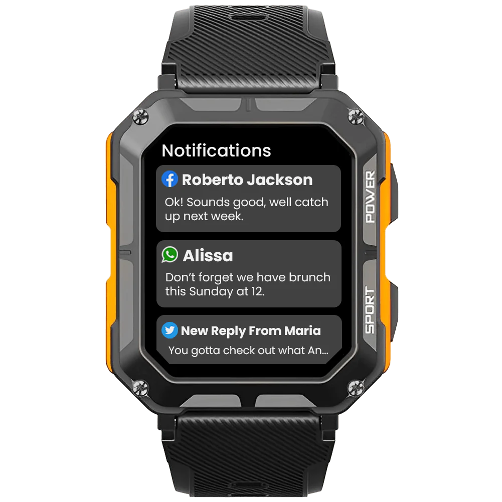 Mantenteconectado sin interrupciones con el reloj inteligente indestructible. Haz y recibe llamadas fácilmente mientras trabajas, sin necesidad de sacar tu teléfono. Con nuestra opción asequible, puedes: