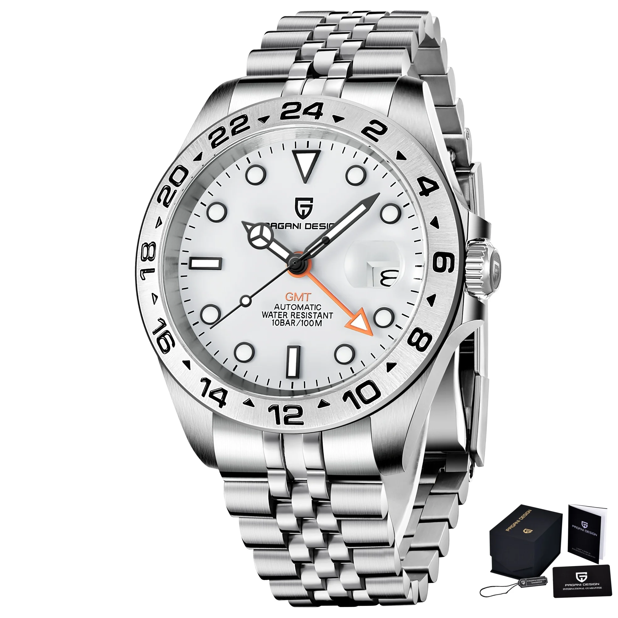 El Reloj Mecánico Automático GMT para Hombre PAGANI Design 2024 es una impresionante combinación de artesanía e innovación. Con su elegante construcción de acero inoxidable, cristal de zafiro y función GMT, este reloj está diseñado para hombres modernos que valoran la elegancia y la fiabilidad. Ya sea para uso profesional o salidas informales, este reloj resistente al agua realza tu estilo y garantiza una hora precisa.