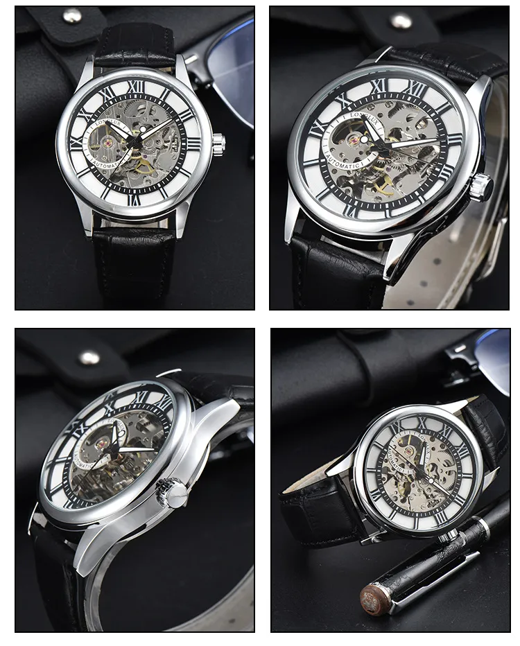 Este reloj es más que un simple reloj: es un reflejo de tu estilo personal. El Reloj mecánico para hombre con escala romana, resistente al agua, de moda y para negocios complementa una variedad de entornos, desde reuniones corporativas hasta brunchs de fin de semana. Su diseño versátil lo hace ideal para combinar con trajes, atuendos informales de negocios o incluso atuendos elegantes.