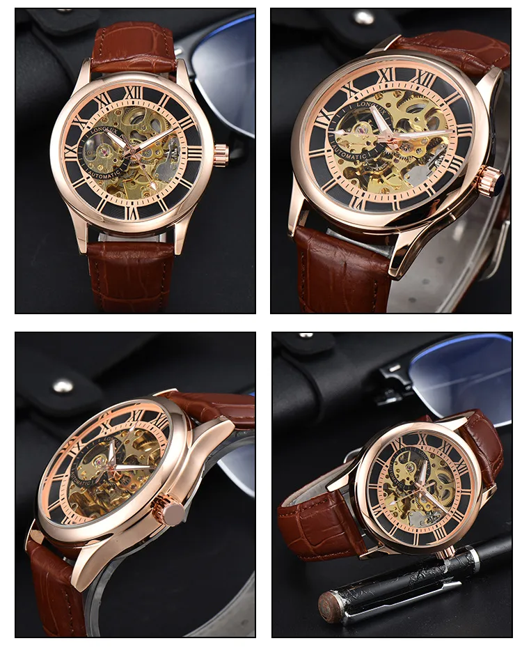 Este reloj es más que un simple reloj: es un reflejo de tu estilo personal. El Reloj mecánico para hombre con escala romana, resistente al agua, de moda y para negocios complementa una variedad de entornos, desde reuniones corporativas hasta brunchs de fin de semana. Su diseño versátil lo hace ideal para combinar con trajes, atuendos informales de negocios o incluso atuendos elegantes.