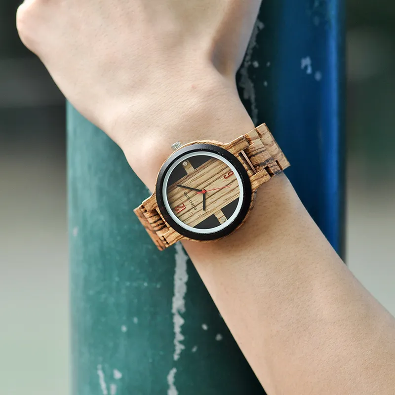 Versatilidad de moda: Ya sea que te vistas elegante para una reunión de negocios o informal para una aventura de fin de semana, los relojes de madera se pueden combinar con una amplia variedad de atuendos. Ofrecen una estética atemporal que complementa tanto la vestimenta informal como la formal.