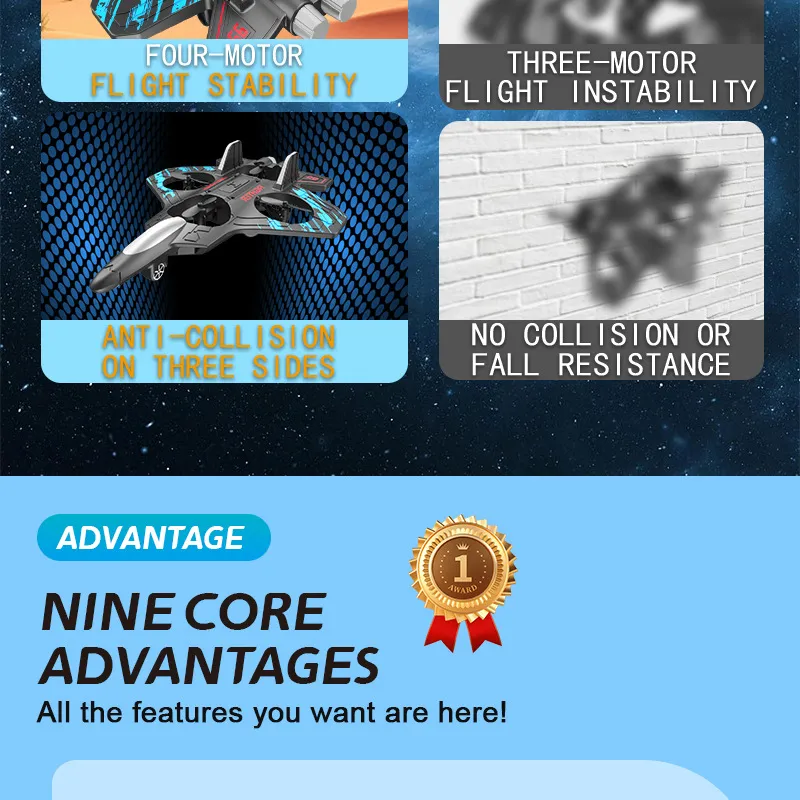 - 【Safe and durable】: The four spirals are built into the fuselage, and the structured style ensures safe flight. At the same time, it will protect your children from injuries caused by propeller rotation. The high quality and soft EPP material can withstand countless collisions or drops. Very durable and reliable fighter plane that is suitable for children of all ages and novice operators.