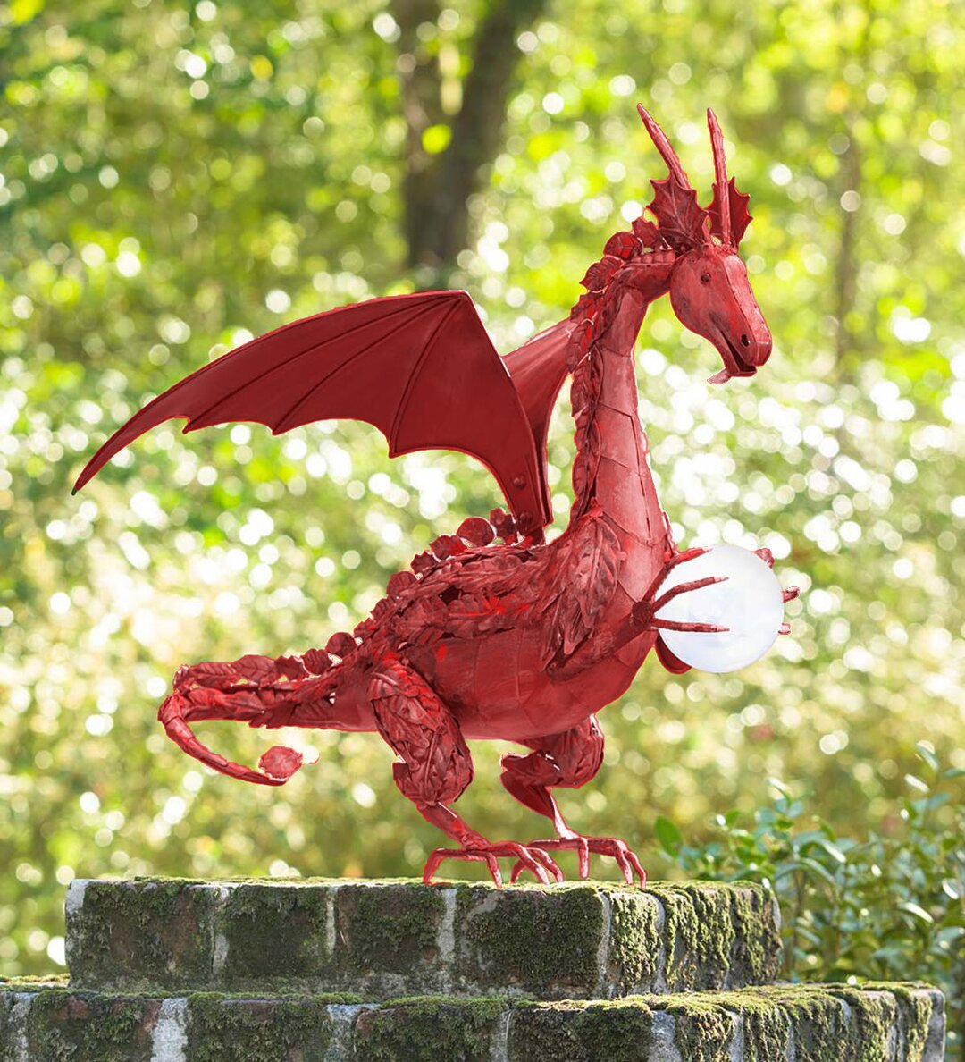 This fantasy-inspired garden ornament brings a sense of mystical charm and whimsy to your outdoor space. The glowing ball feature and flying dragon design combine to create an enchanting atmosphere, making it perfect for those who want to add a magical element to their garden or landscaping.