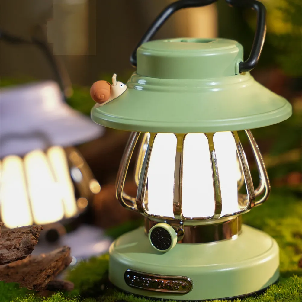 Crafted with rugged outdoor use in mind, this night light features a robust, durable design that can withstand the elements. Powered by a rechargeable battery, it provides long-lasting light that can be used in a variety of outdoor settings. The vintage design, combined with modern charging technology, makes it a versatile and must-have companion for every adventure. With its adjustable brightness settings, you can create the perfect atmosphere whether you need bright light for cooking and setting up camp or a soft glow for relaxing after dark.