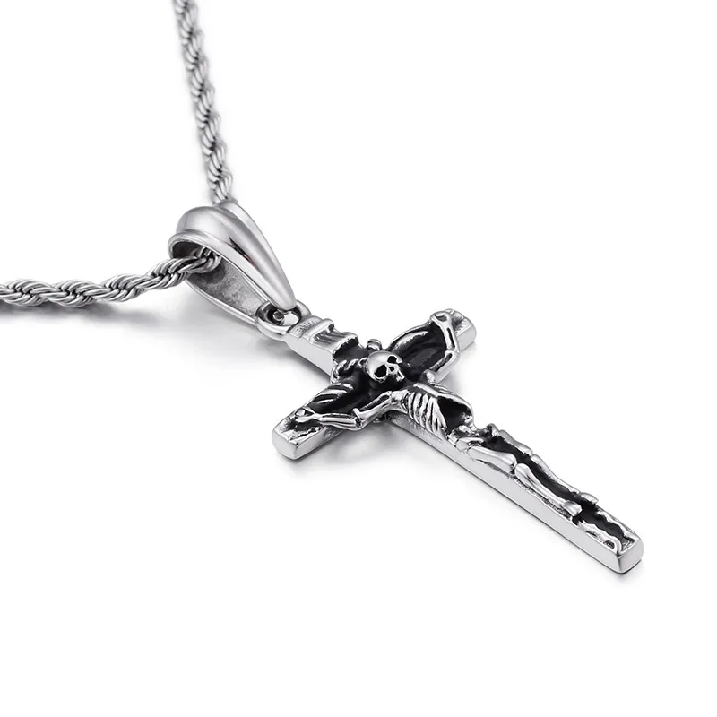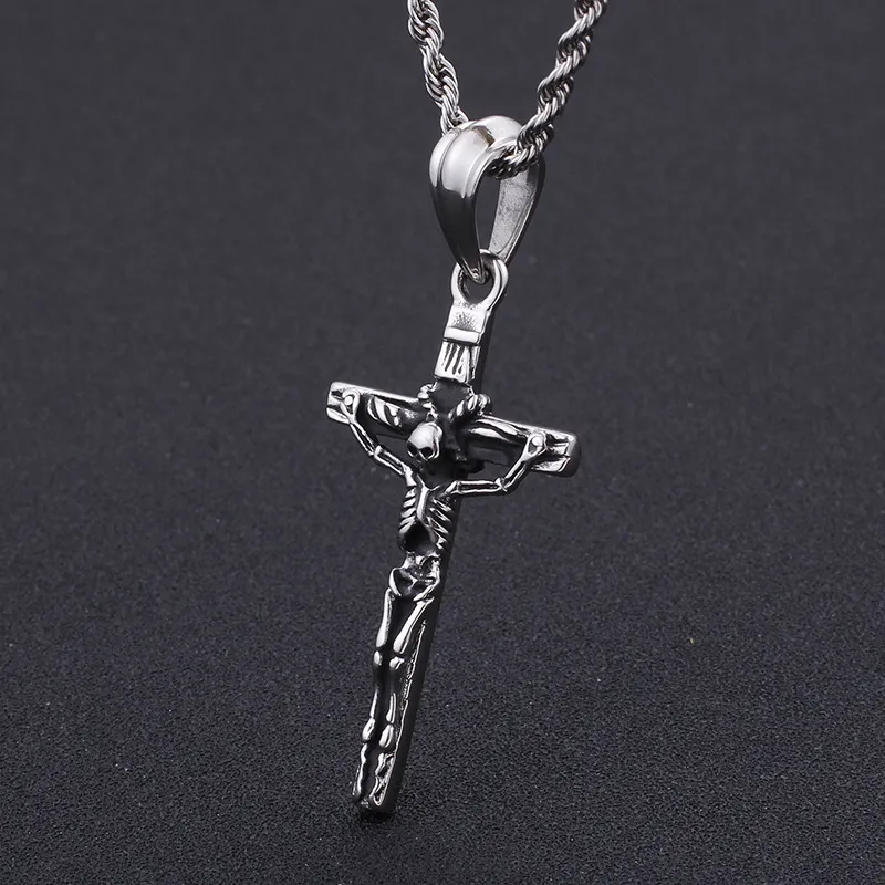 Retro Fashion Jewelry Cross Pendant Personality Cool Skull Men's Stainless Steel Pendant