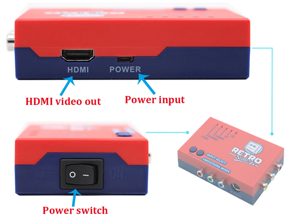 Power input-- Any decent quality Micro USB charger can be used to power the RetroScaler2x, as it’s a very efficient device. Your are even able to power mine via the USB ports of your TV!