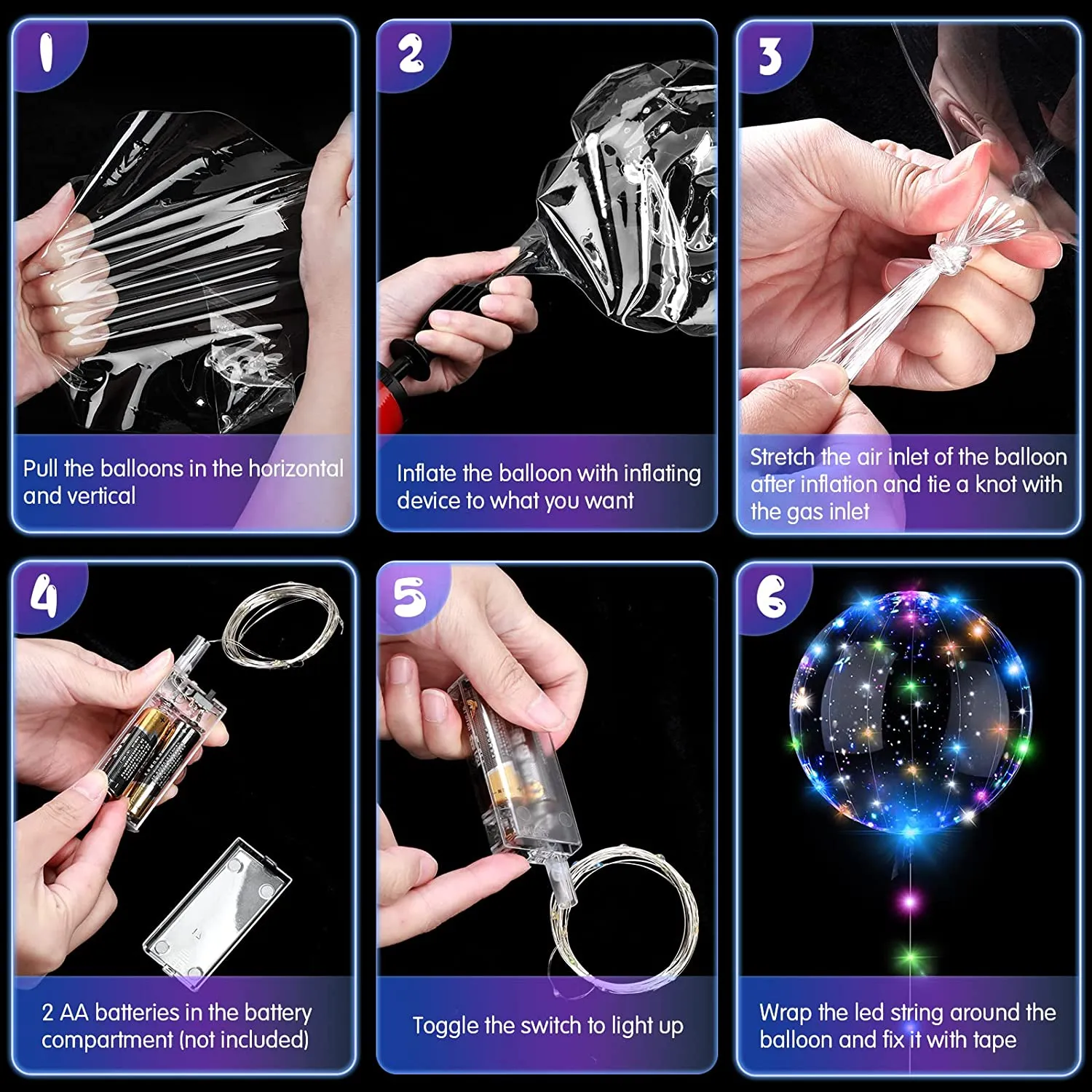 Specifications Material: TPU Color: Transparent Size: 19.8cm/7.8inch Package contents: 10pcs Light Up Led Balloons +10 String Lights,No
