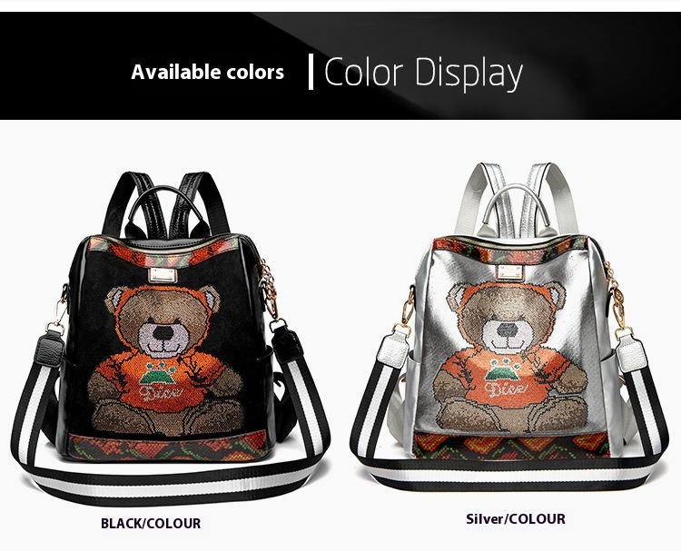 embellishments with a spacious interior, this backpack offers both glamour and functionality. Perfect for daily use, travel, or special