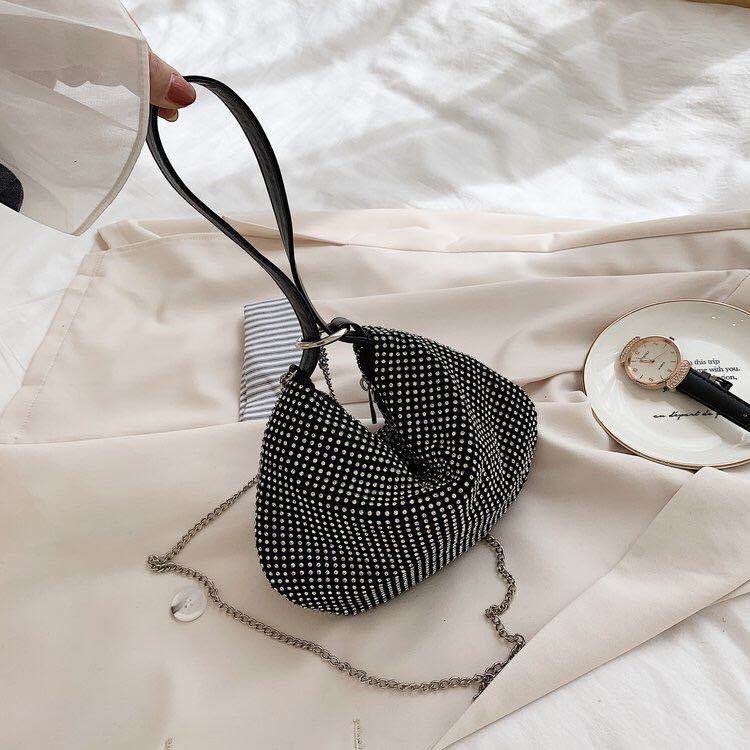 Rhinestone One-shoulder Messenger Dumpling Bag