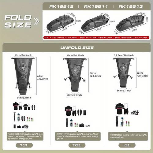 5L-10L-13L Capacity Options: The bag is available in 5L, 10L, and 13L sizes, providing a flexible storage solution for