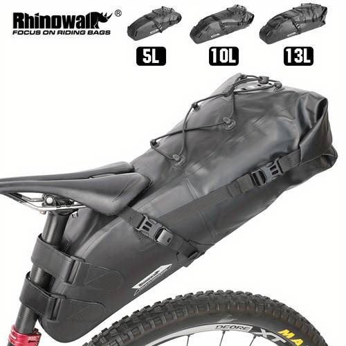 The Rhinowalk Large Capacity Bicycle Saddle Bag is made from durable polyester fabric, ensuring long-lasting use and resistance to weather conditions. Its large 5L-13L capacity options offer versatile storage space, making it suitable for everything from daily commutes to long-distance tours. The adjustable mounting points allow for a secure fit on most bikes, whether you're riding on mountain trails or road paths.