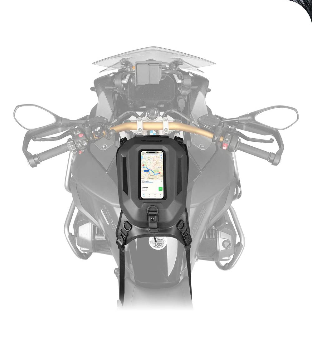Sleek, Secure Fit: The bag mounts securely to your motorcycle’s fuel tank, providing a stable, snug fit that won’t shift or