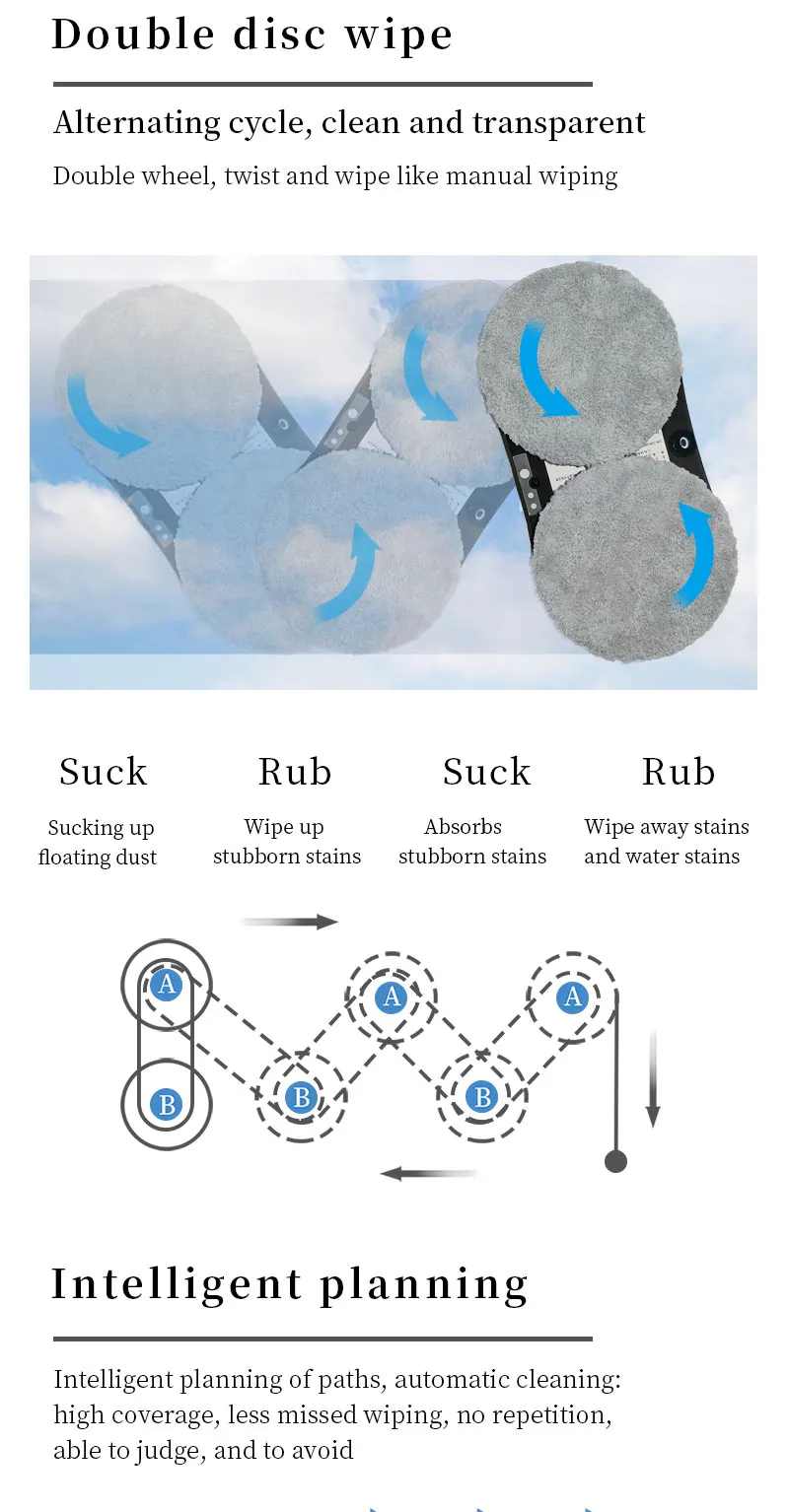 Robot limpiacristales con pulverizador de agua: limpiador de cristales inteligente de gran altura con motor sin escobillas de doble cara