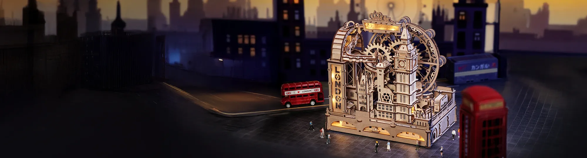 More than just a model, this mechanical puzzle features a functional marble track running through four iconic stations: London Eye, Big Ben,