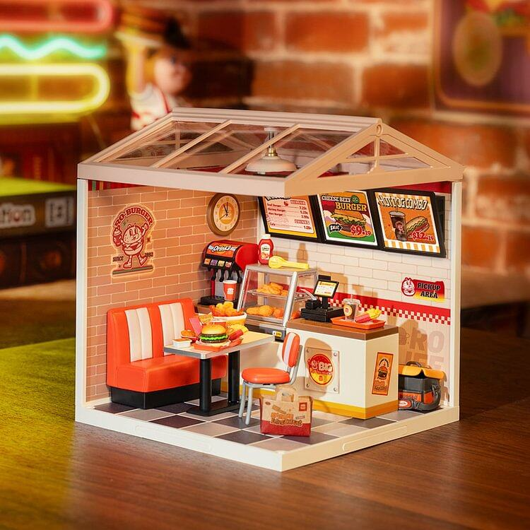 Step into the world of miniatures with the ROBOTIME DIY Miniature Dollhouse Yum Burgers Kit! This charming model kit allows you to create a cozy, burger-themed dollhouse with intricate details and vibrant LED lighting. Designed for New Zealanders who enjoy hands-on projects, this kit combines the art of miniature building with the fun of a burger shop theme, making it ideal for burger lovers, crafters, and decor enthusiasts.