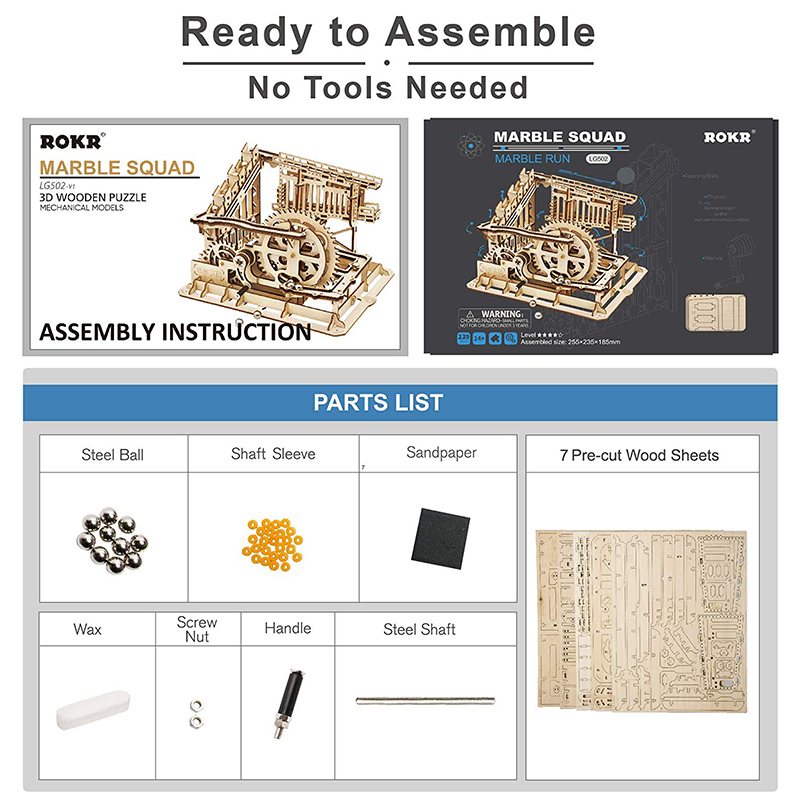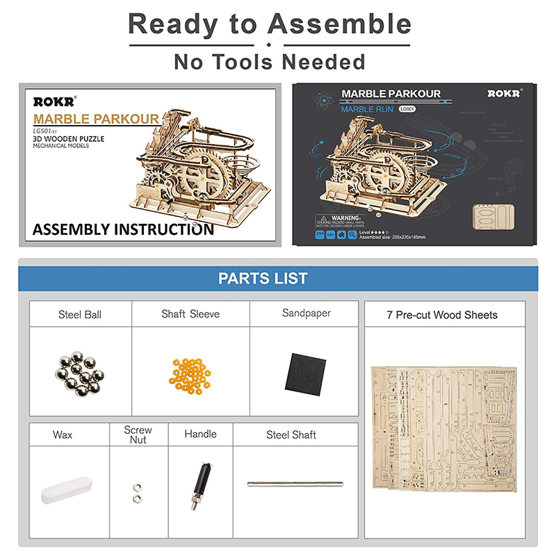 - Includes all wooden parts, marbles, and detailed instructions.