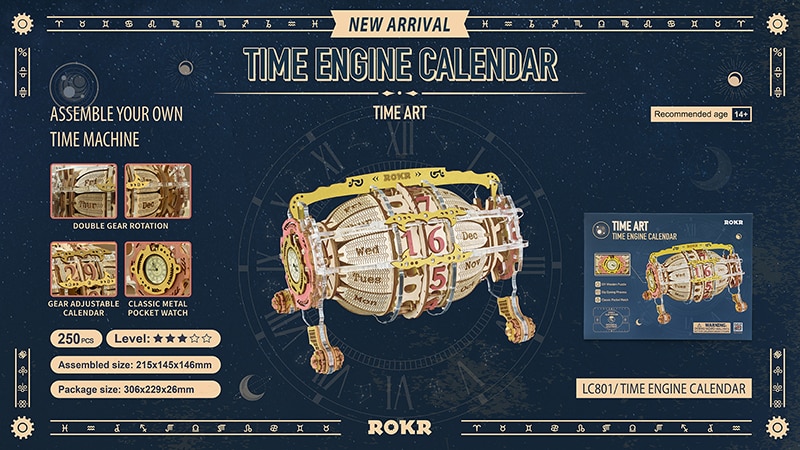 Robotime ROKR Time Engine Calendar 3d Wooden Puzzle Model Toys for Children Kids LC801