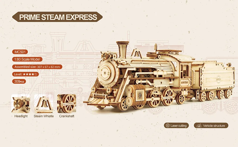 ROBOTIME Rompecabezas de madera 3D Prime Steam Express Kits de construcción de modelos DIY Regalo de Navidad