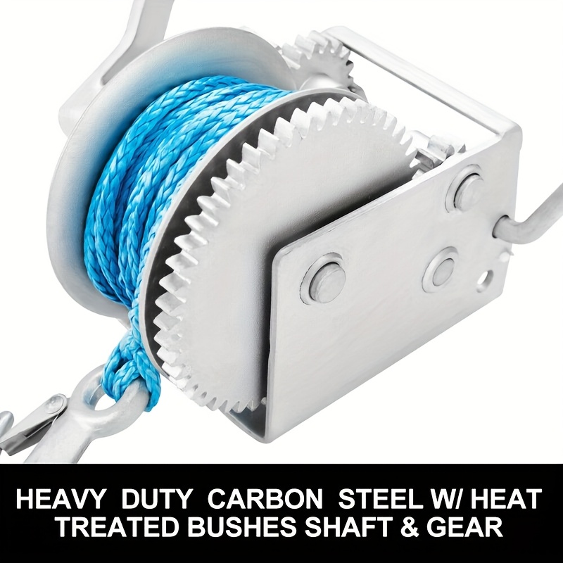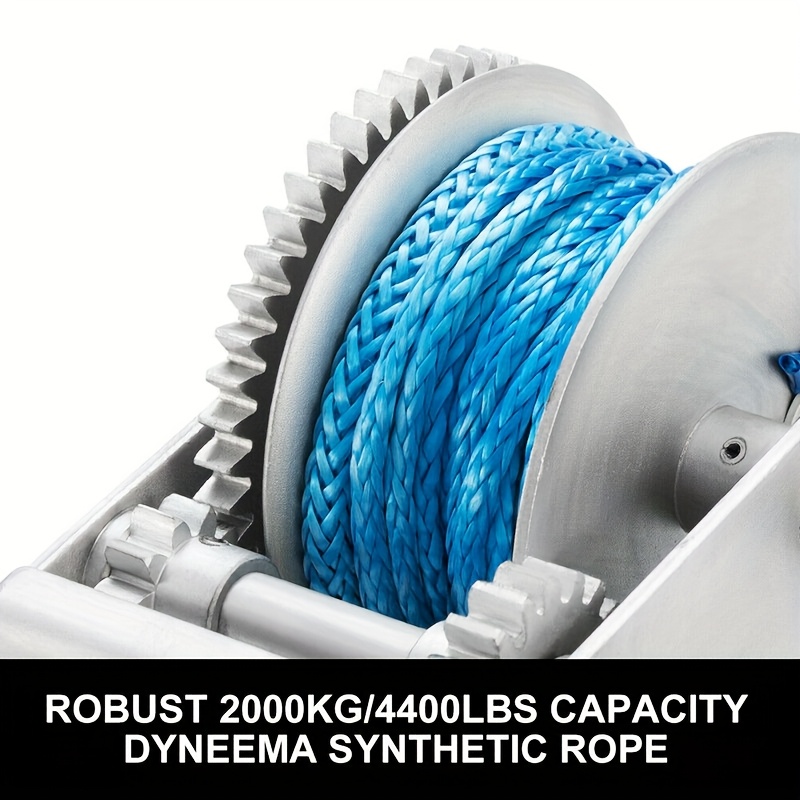 Perfect for towing and lifting heavy loads, this manual winch features durable Dyneema synthetic rope and is ideal for use with boats, cars, and outdoor activities.