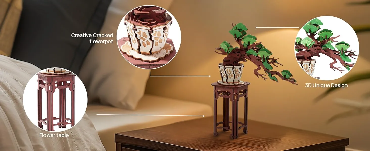 Ideal for women, men, and teens, this wooden puzzle makes a perfect gift for those who enjoy hands-on projects, nature-inspired decor, or unique artistic creations. Once assembled, the bonsai tree becomes a beautiful, timeless piece of art that will enhance any room.