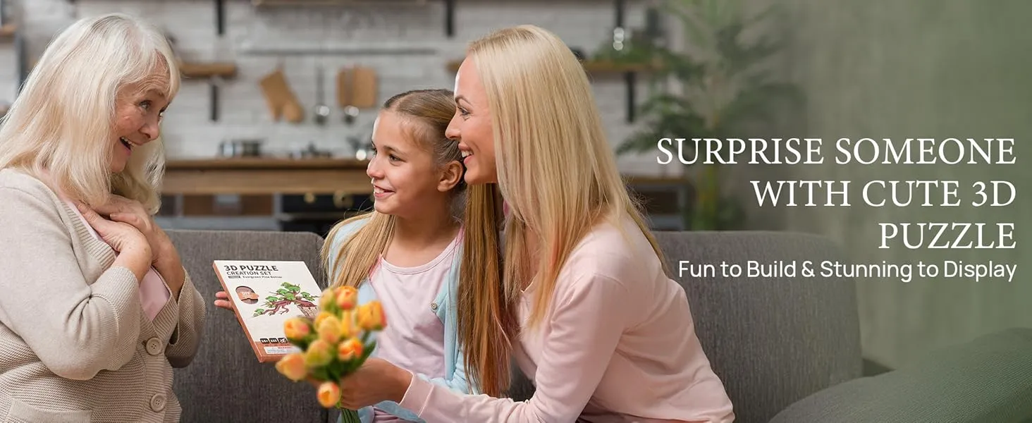 Looking for a unique and thoughtful gift for a loved one? The Rolife 3D Puzzle Artificial Flower Sakura Bonsai makes an excellent gift for birthdays, holidays, Mother's Day, or any special occasion. It’s a meaningful gift that combines creativity, artistry, and craftsmanship, making it a perfect present for women, men, and teens.