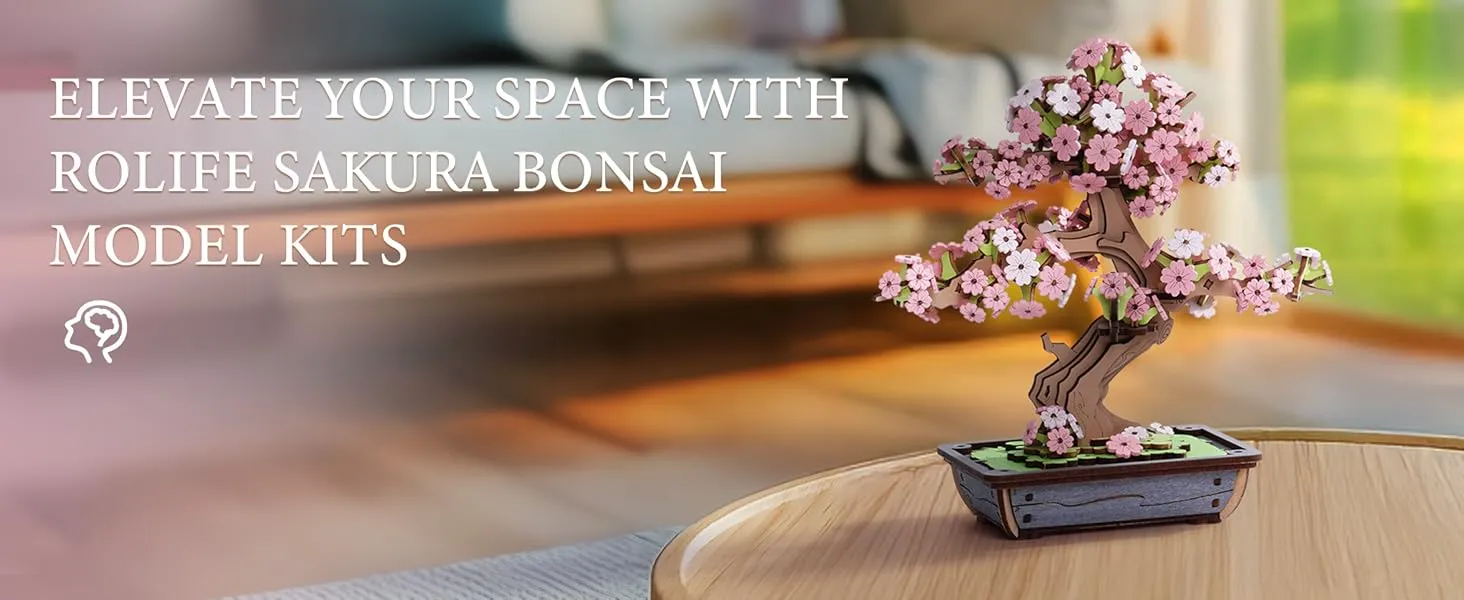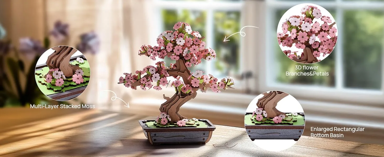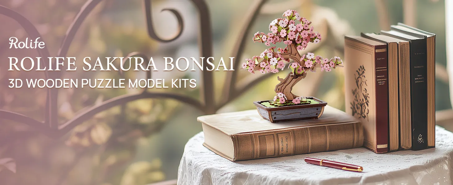 - 【Sentiment & Collection】Rolife Sakura Bonsai is lifelike, with dreamy pink flowers; while Evergreen Pine Bonsai is serene and elegant, capturing the natural beauty in a classic way. Rolife 3D puzzles model kits combine traditional mortise and tenon craftsmanship with modern design concepts, creating a novel and artistic appearance , suitable for long-term preservation and display.