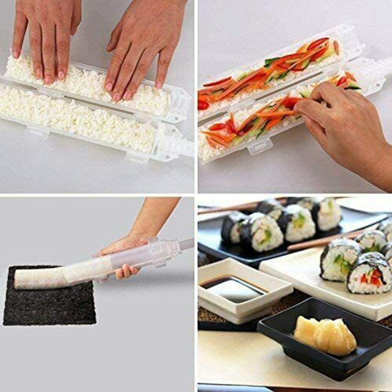 Create perfect sushi rolls at home with this easy-to-use roller sushi roll mold, a must-have kitchen tool for sushi lovers. Whether you're a beginner or an experienced sushi chef, this mold simplifies the process of making professional-quality sushi rolls in minutes. Made from durable, food-grade plastic, it is safe, non-toxic, and designed to deliver consistent, tightly packed rolls with minimal effort. Simply add your ingredients, roll, and enjoy delicious homemade sushi without the mess or fuss of traditional rolling mats.