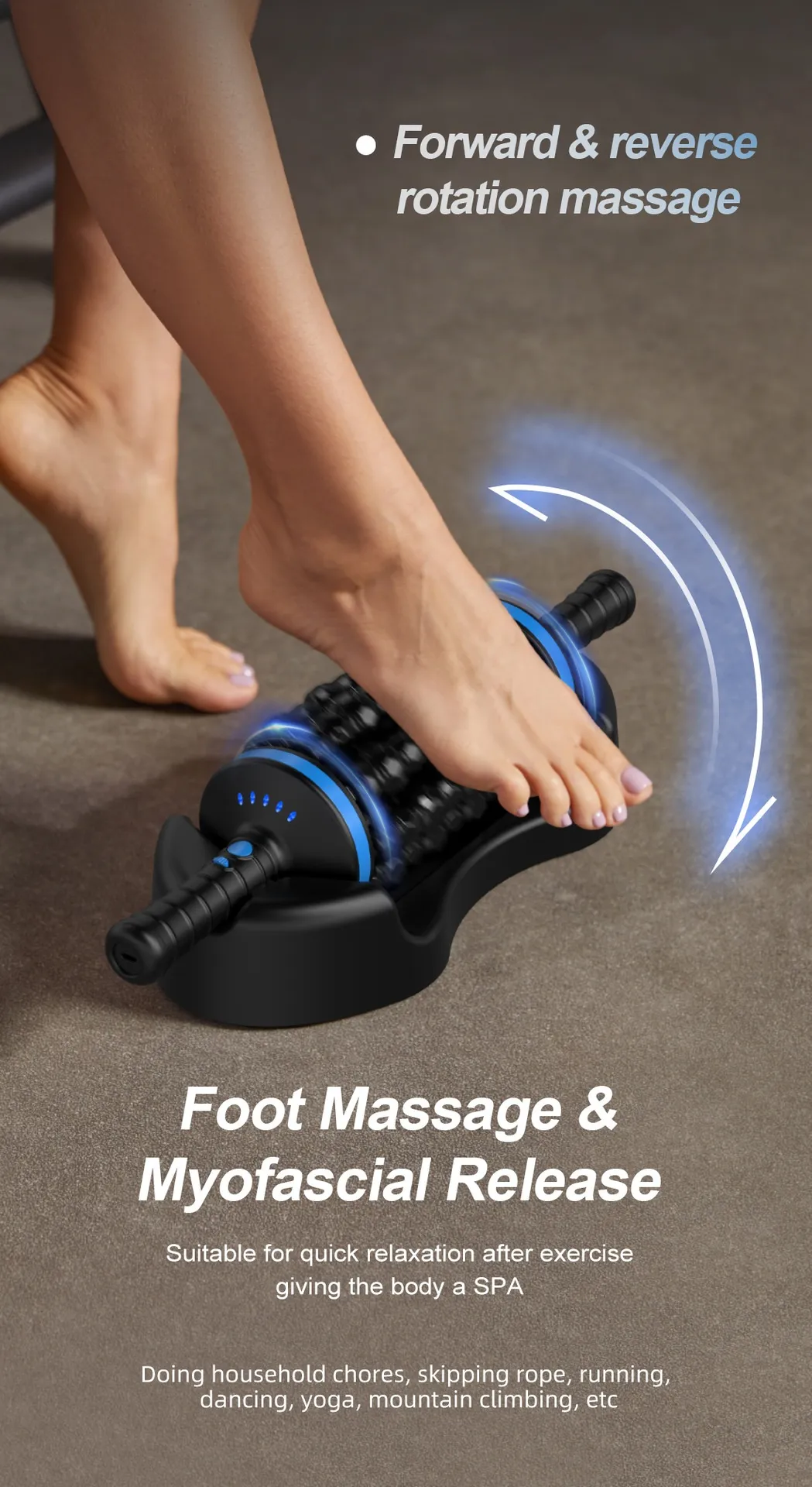 - Relieves pain and tension in feet, claves, and lower body
