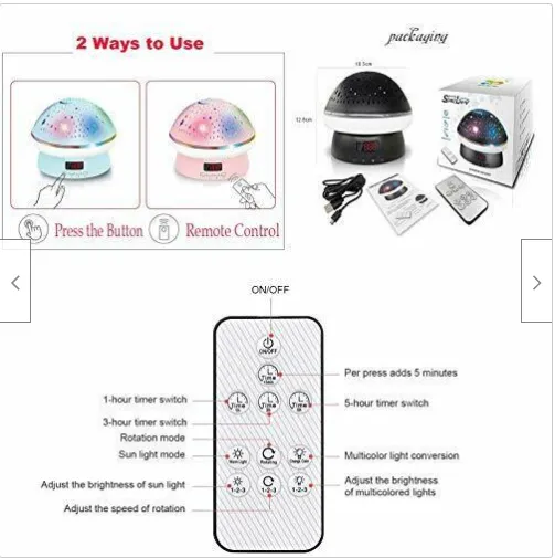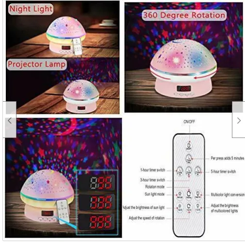 Atmosphere-Enhancing Projections: The lamp projects a full, starry sky and planetary images,