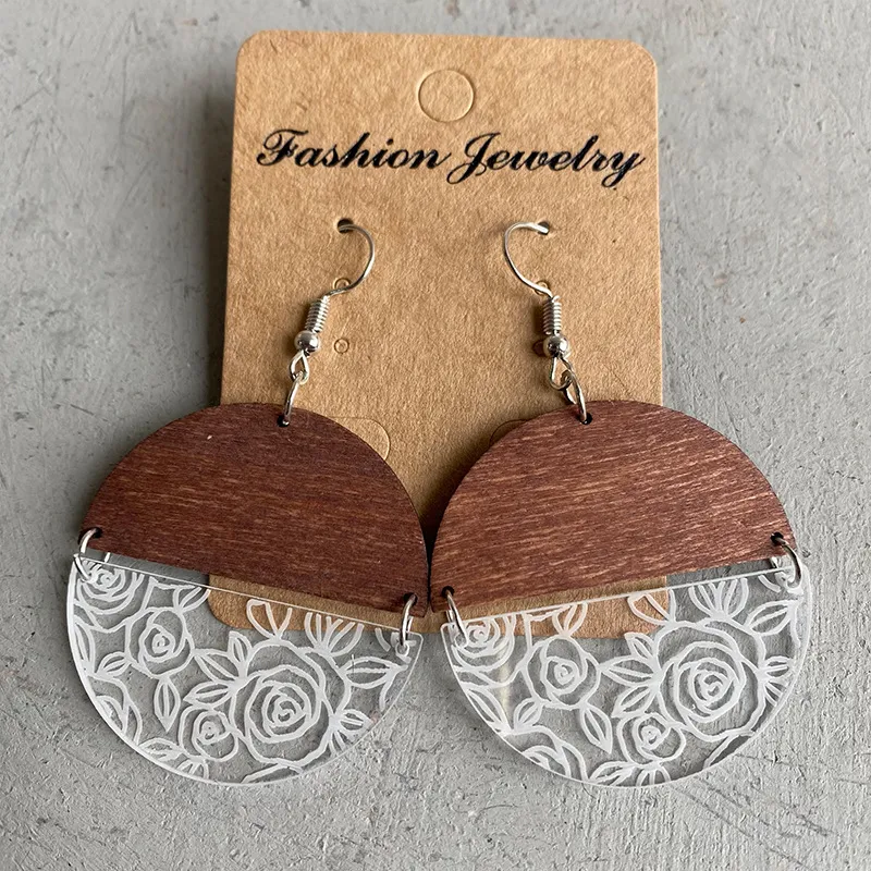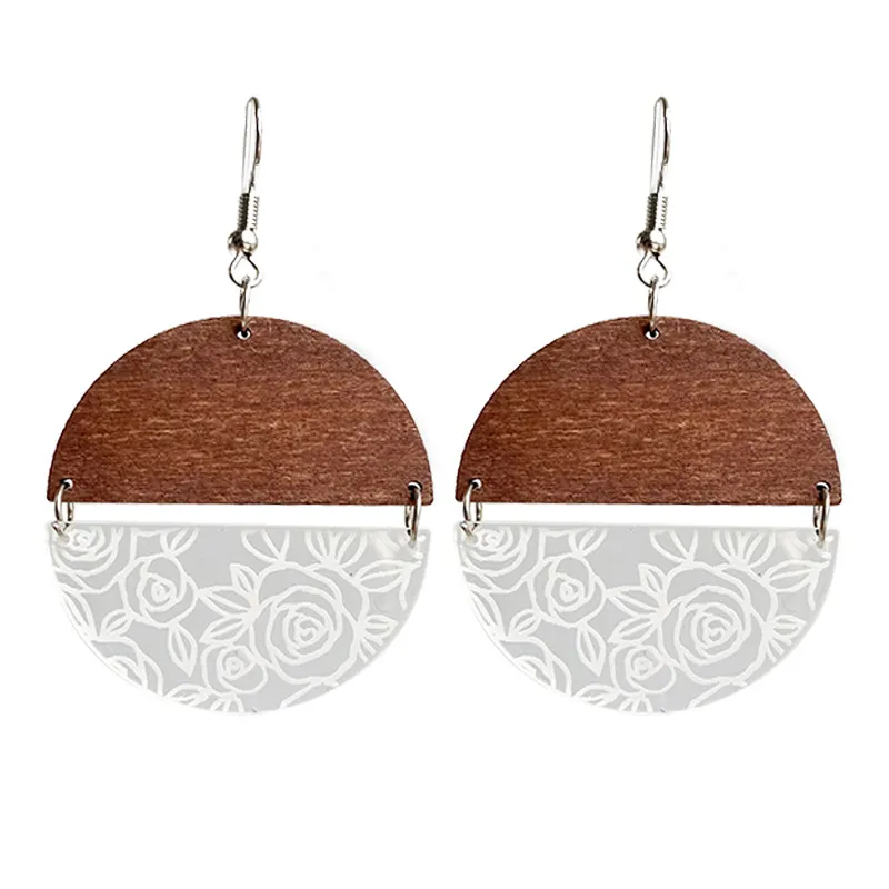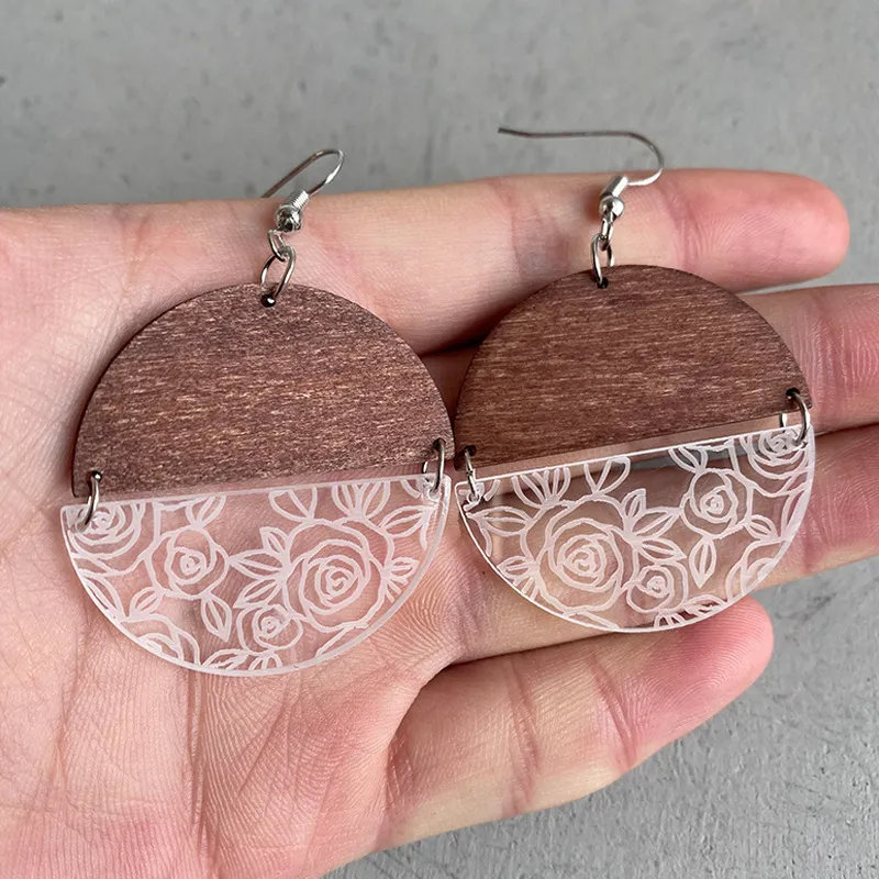 Rosa con costura geométrica de madera acrílica