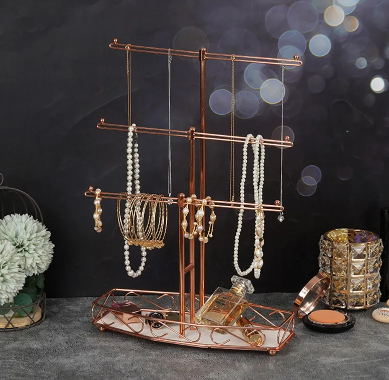 Rose Gold 3-Tier T-shaped Jewelry Display Storage Rack