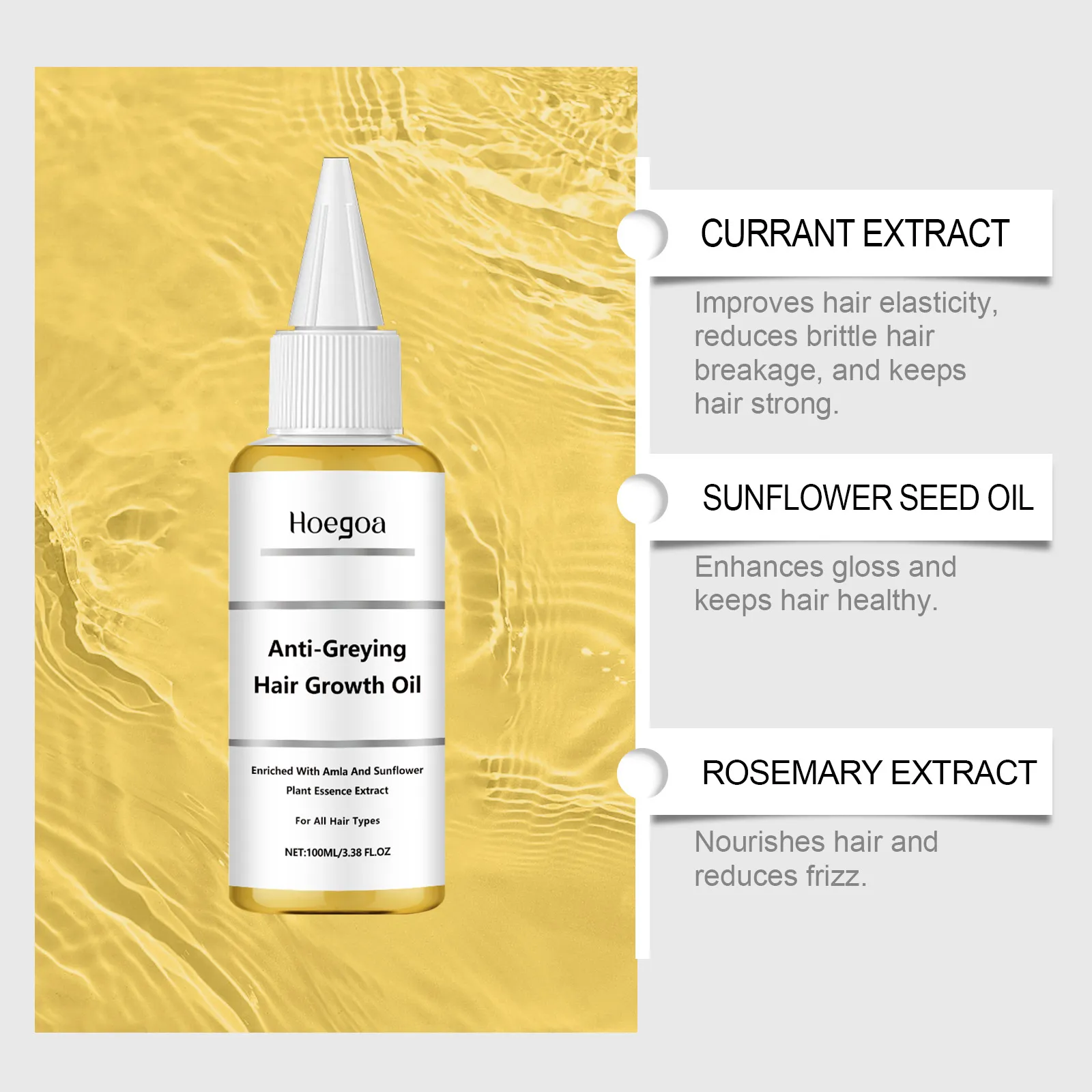 Ingredients: liquid paraffin, polydimethylsiloxane, gooseberry extract, sunflower seed oil, rosemary extract